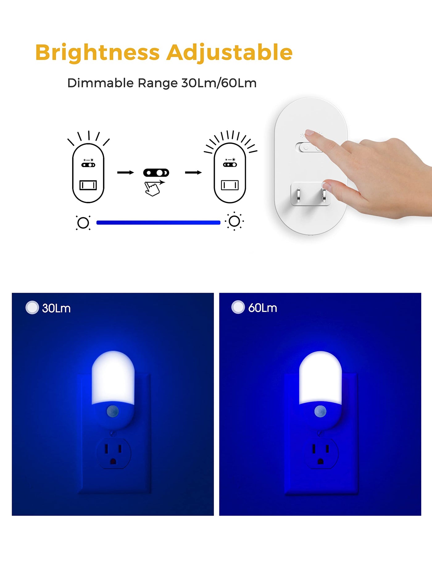 Blue Night Light Plug In, Lohas Motion Sensor Blue Led Night Lights Plug Into Wall, Adjustable Brightness, 0.6W Led Night Lights For Kids, Bathroom, Bedroom, Independence Day Decorations, 2 Pack