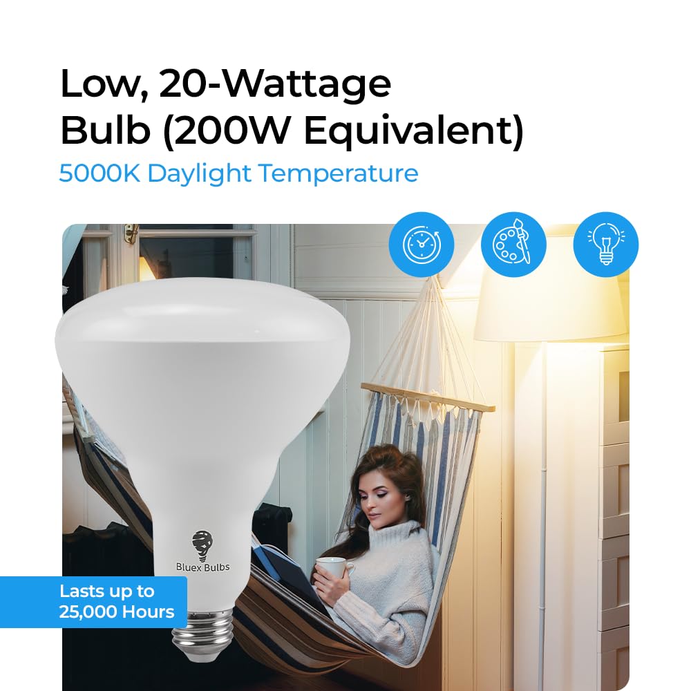 High-Power Bulbs: Turning on instantly to full brightness, each Bluex Bulbs HO High Power BR40 LED Light Bulbs boasts 1800 lumens with a 110 beam angle to cast light over a wide area - lighting up your home immediately to create a cozy atmosphere.