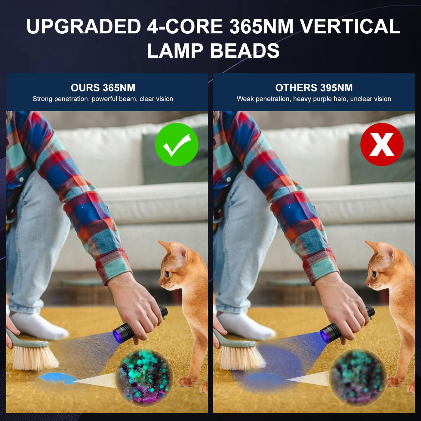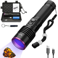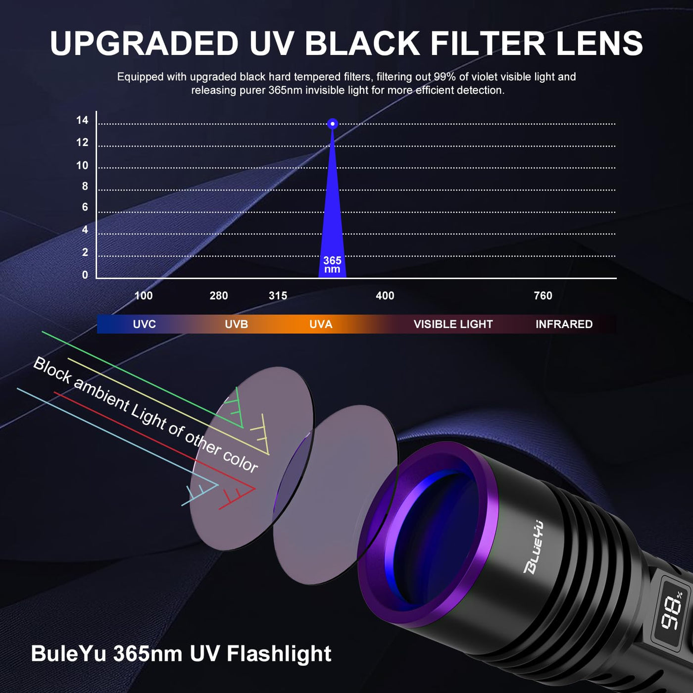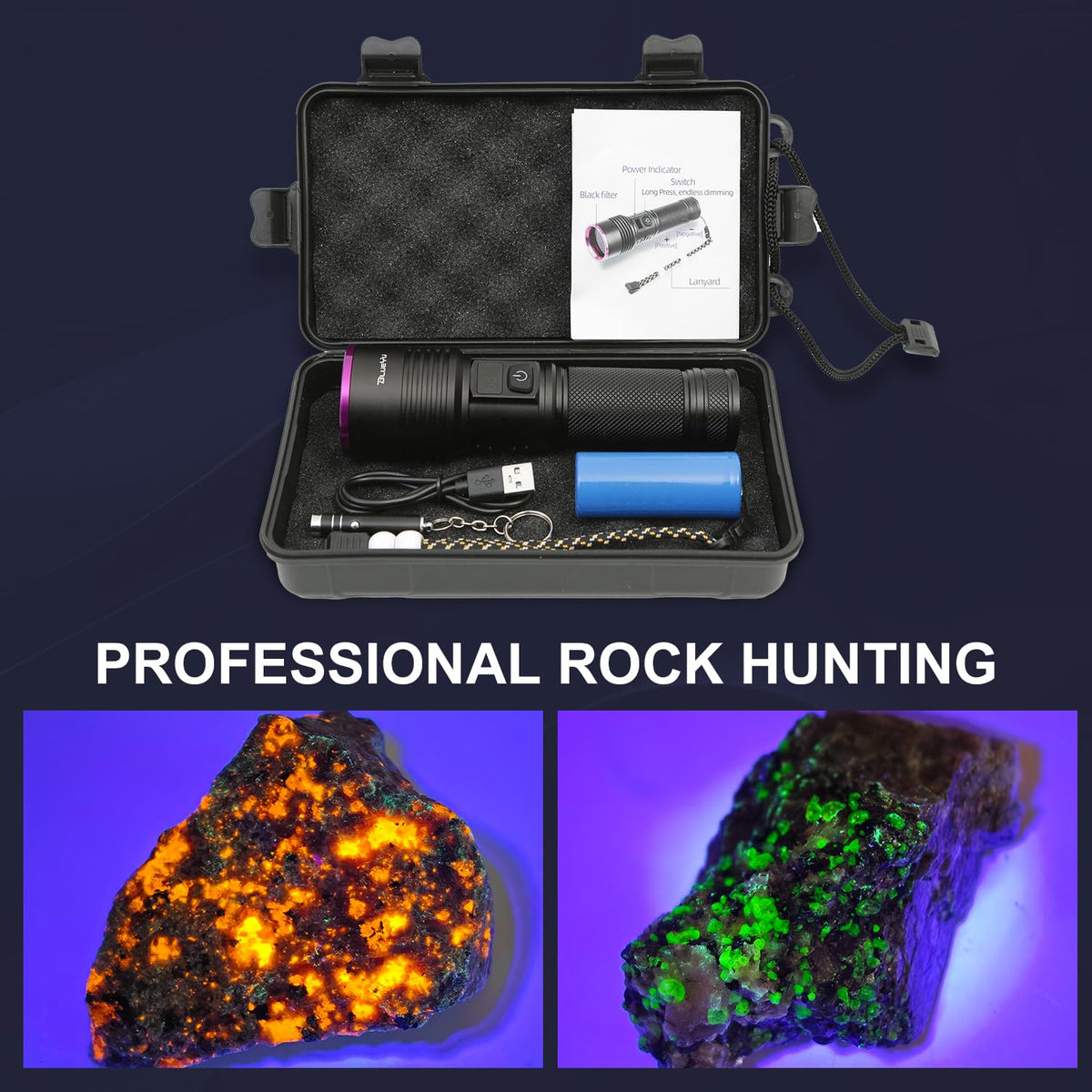 Blueyu 365Nm Uv Flashlight, Type-C Rechargeable Uv Light, Powerful Blacklight Flashlights For Pet Urine Detection, Rocks, Resin