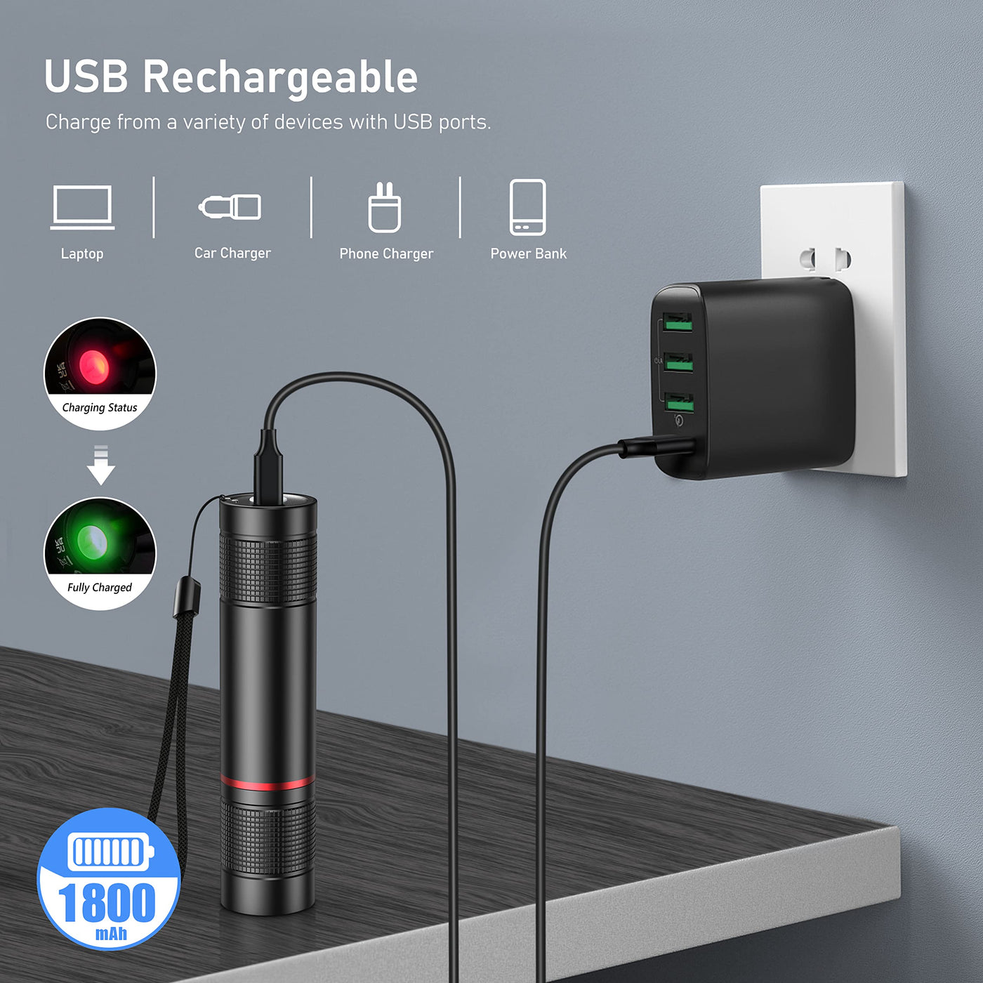 - **USB Rechargeable Convenience**: Equipped with a robust 1800mAh battery, this flashlight can illuminate your path for up to 16 hours on a single charge. The included USB cable makes recharging effortless, so you’re always ready for action.