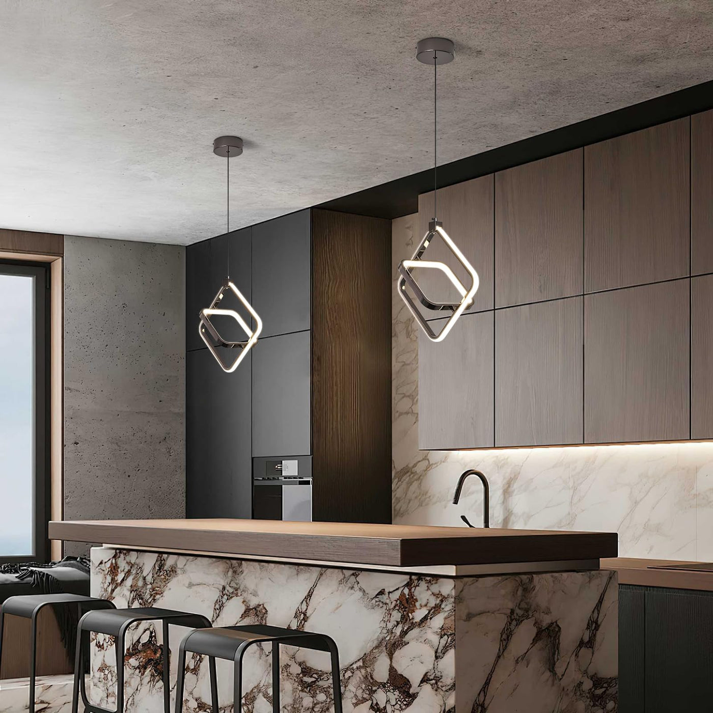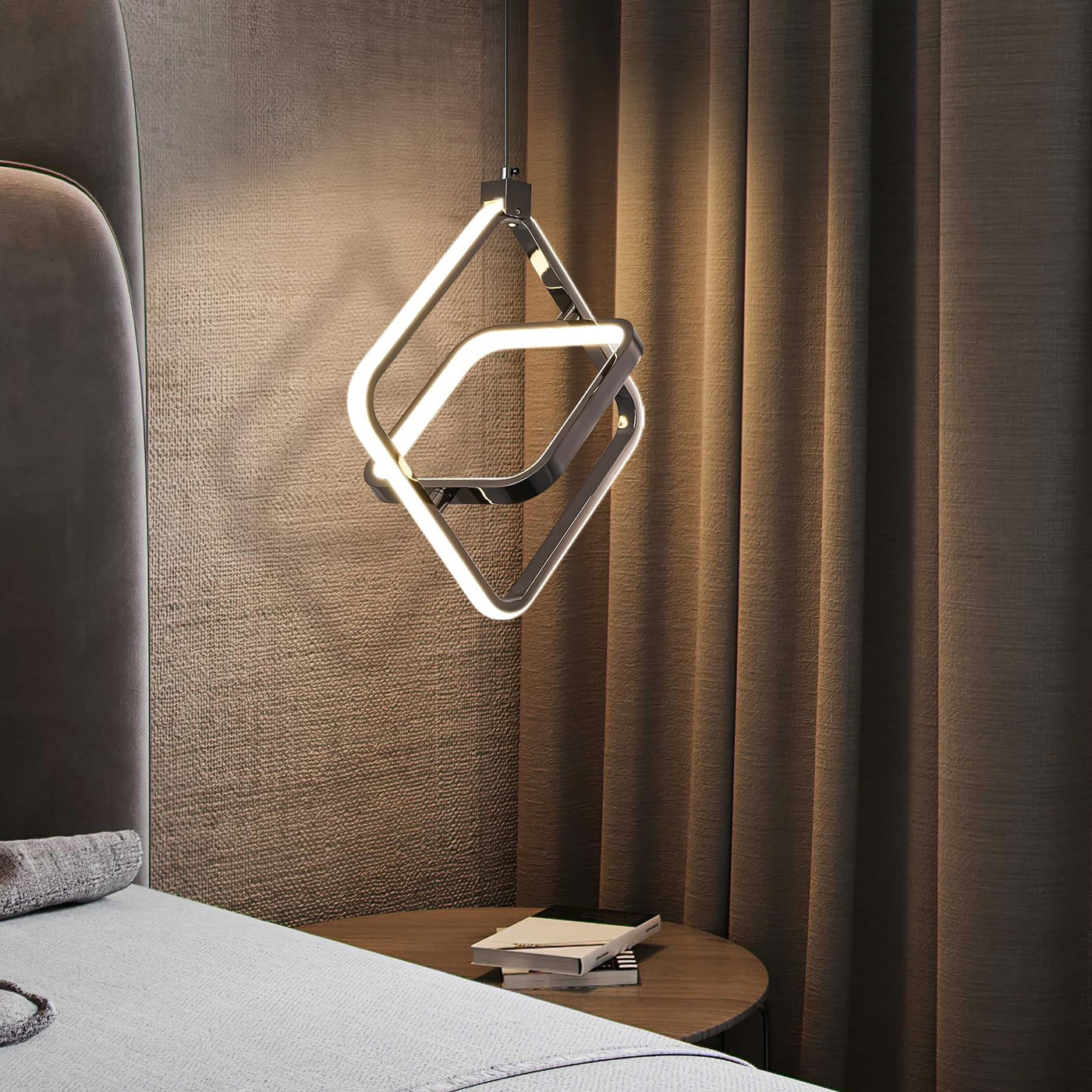 Modern Led Chandelier Black Farmhouse Rectangular Pendant Light Fixtures 4000K 20W Dimmable Height Adjustable Pendant Lighting For Dining Room Kitchen Island Bedroom Living Room Foyer(1-Pack)