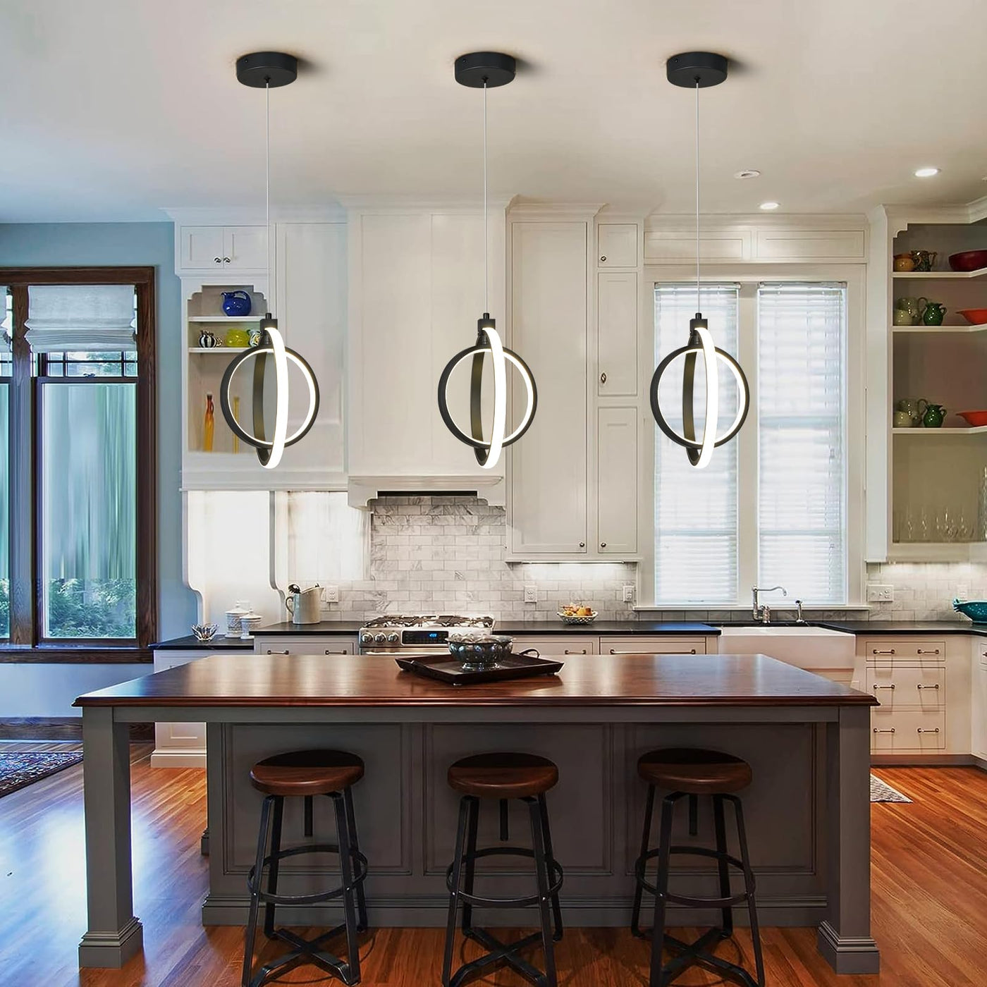 Modern Led Chandelier Black Ring Pendant Light Fixtures 4000K Dimmable Height Adjustable Pendant Lighting For Dining Room Kitchen Island Bedroom Living Room Foyer(1-Pack)