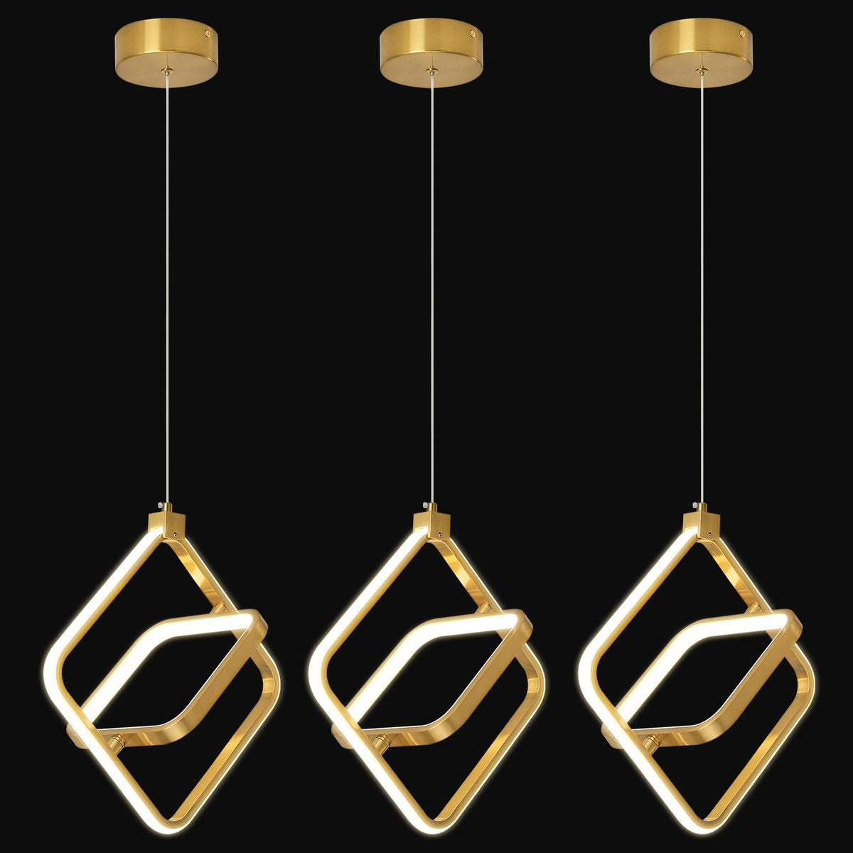 Modern LED Chandelier Gold Rectangular Pendant Light Fixtures 4000K 20W Dimmable Height Adjustable Pendant Lighting for Dining Room Kitchen Island Bedroom Living Room Foyer(3-Pack)