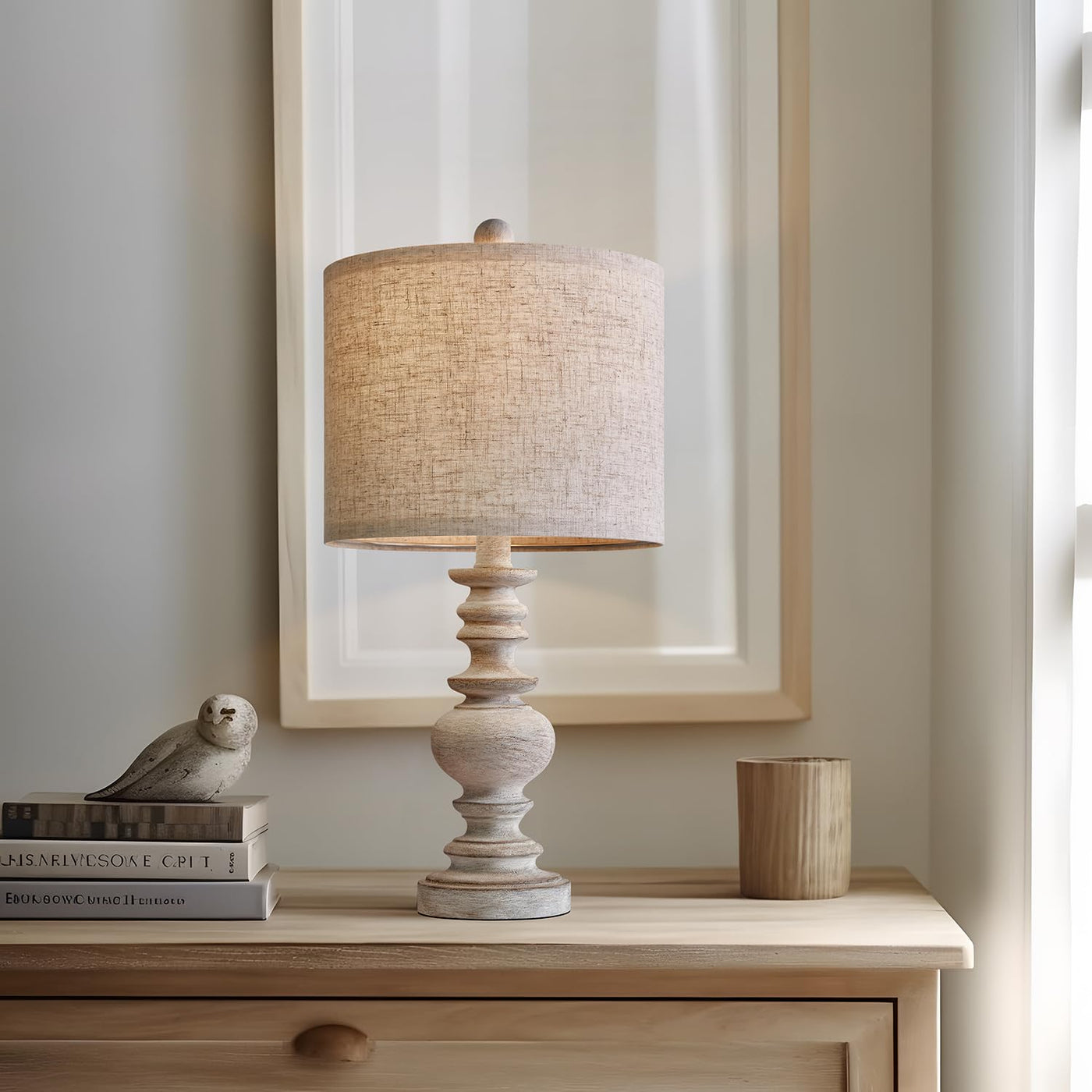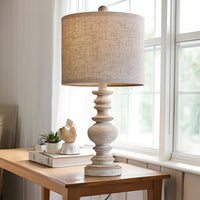 Q: What materials are used in the construction of this table lamp?A: This table lamp features a resin body for durability and a linen fabric lampshade that softens brightness, creating a warm and inviting atmosphere.
