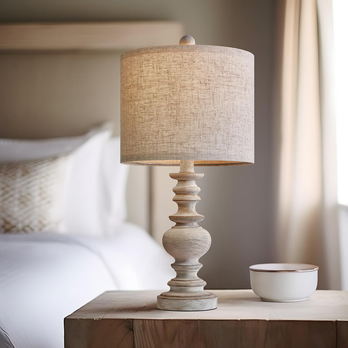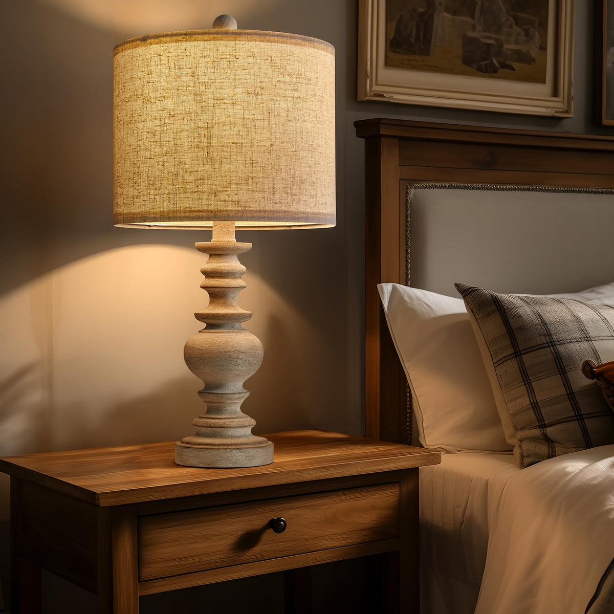 Bobomomo 20" Rustic Single Table Lamp, Antique Gray, Vintage Linen For Living Room & Bedroom