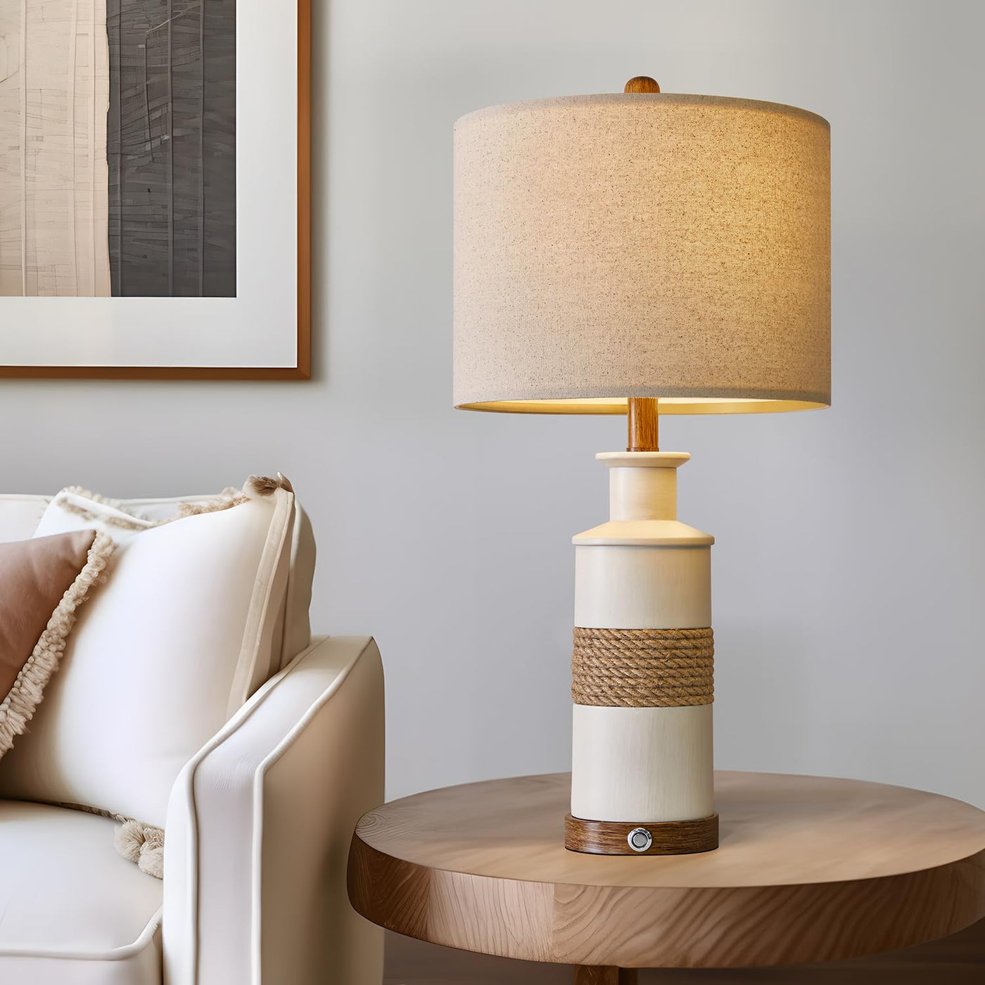 Q: Is the BOBOMOMO Table Lamp suitable for different room styles?A: Yes, its boho and elegant design, featuring an old-white resin body and linen fabric shade, complements various decor styles including industrial, modern, and minimalist designs.