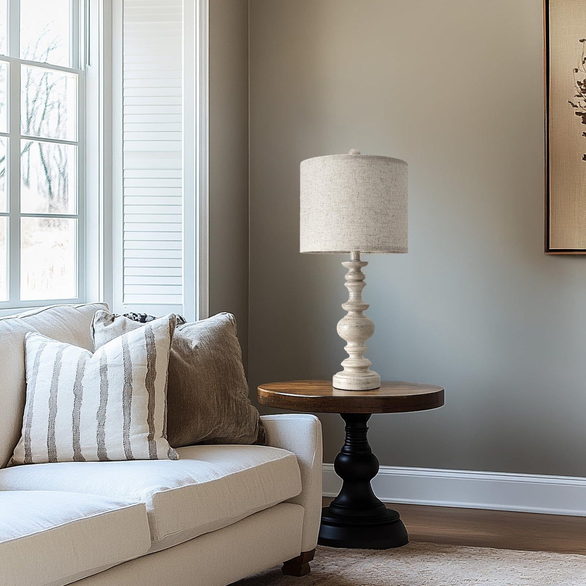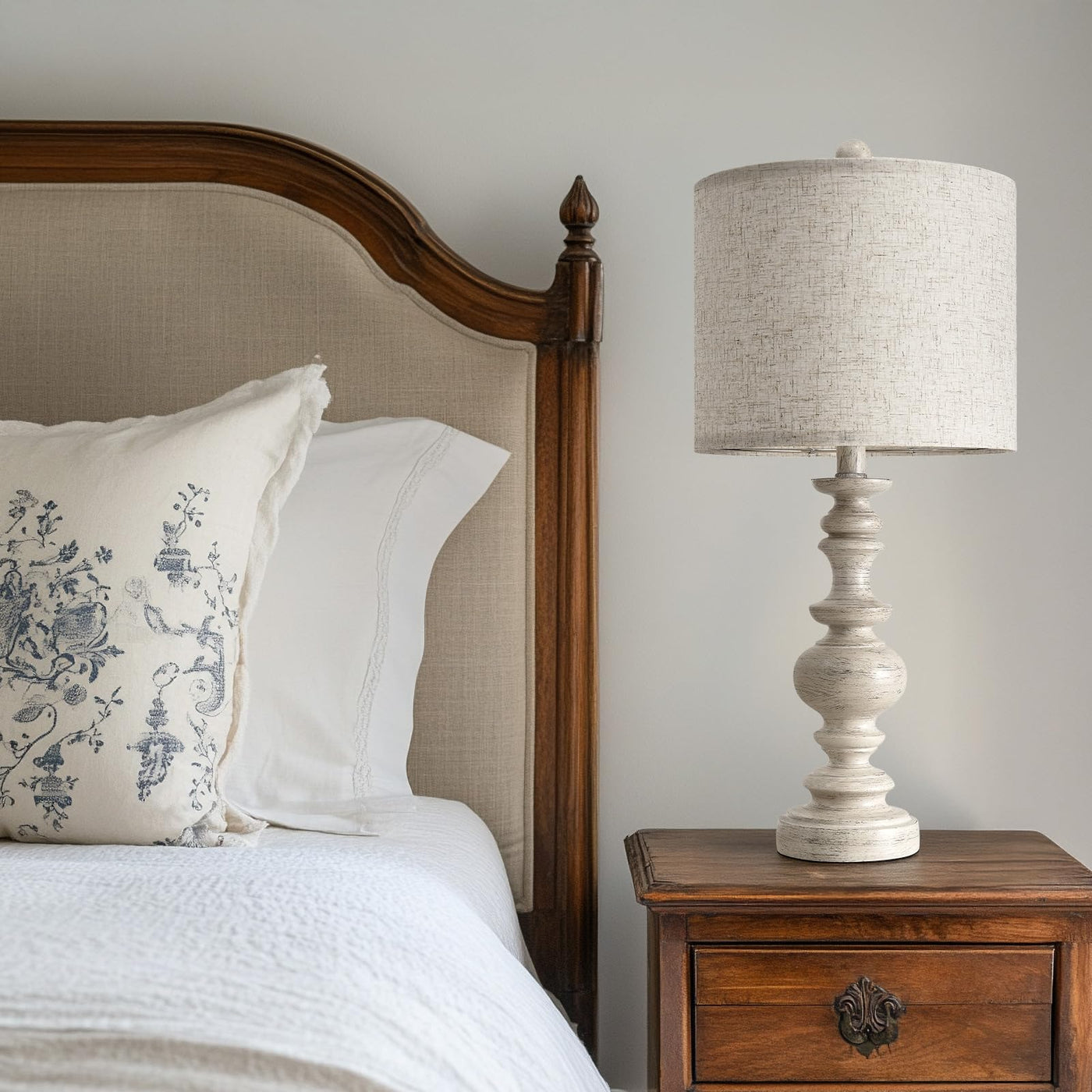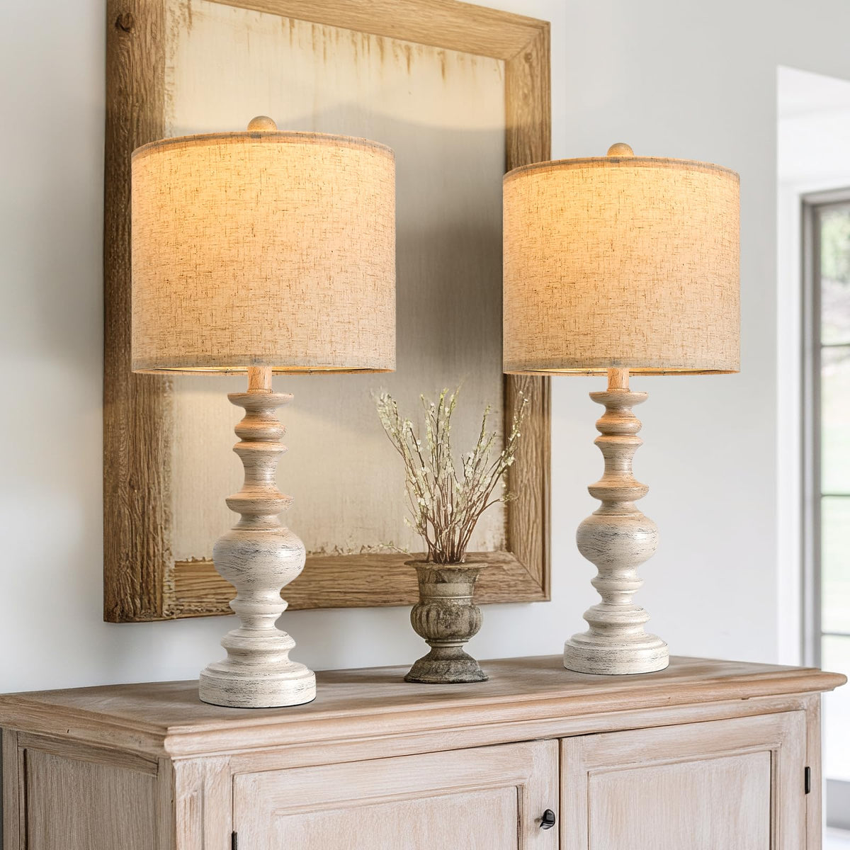 Bobomomo 24Farmhouse Resin Table Lamp Set Of 2, Vintage Lamps For Living Room Bedroom With Linen Shades, Traditional Rustic Beds