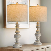 Bobomomo 24Farmhouse Retro Table Lamp Set Of 2, Traditional Resin Lamps For Living Room Bedroom, Vintage Bedroom Lamps With Line