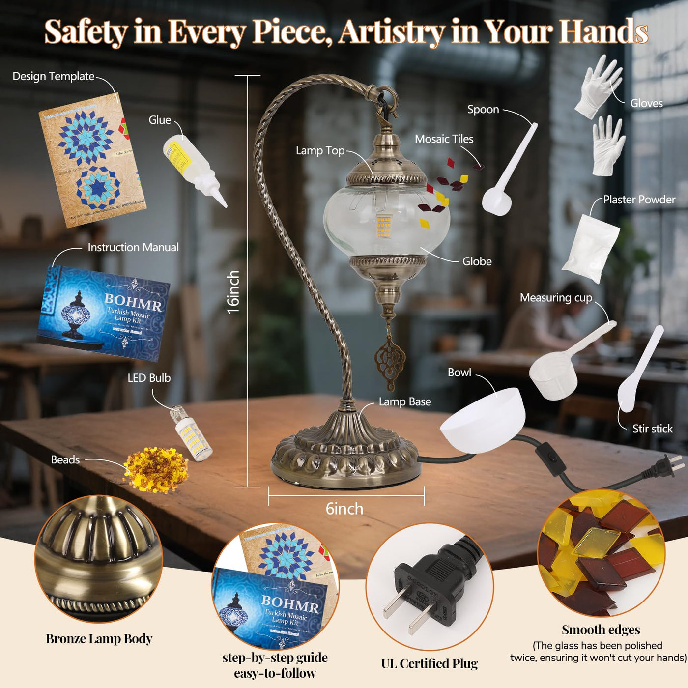 Unleash Your Creativity And Craft A Mesmerizing Centerpiece With The Bohmr Mosaic Kits For mature-themeds Designed To Transform Vibrant Glass Pieces Into A Personalized Swan-Neck Lamp That Embodies Middle Eastern Charm And Modern Artistry. Inspired By Ancient Turkish Craftsmanship This Mosaic Kit Empowers You To Arrange enhanced-Quality Glass Tiles And Beads Into Intricate Geometric Patterns Or Free-Flowing Designs Turkish Lamp Kit Ensuring A Truly Unique Masterpiece That Reflects Your Style. Whether Youre A Beginner Or An Experienced Crafter The Mosaic Lamp Kit Process Is Effortlessly Enjoyable: Pre-Sanded Glass Pieces With Smooth Edges Ensure Safety While The Step-By-Step Guide And Complete Toolset-Including Glue Plaster Powder Disposable Gloves Mixing Tools And An Energy-Efficient Led Bulb (E12)-Simplify Every Step. Our Mosaic Lamp Kit Crafted With Eco-Friendly Non-Toxic Mosaic Glass Polished To A Professional Finish This Mosaic Lamp Kits For mature-themeds Promises Lasting Beauty And Durability. The Precision-Engineered Metal Frame And Sturdy Brass Alloy Base Enhance Structural Integrity While Resisting Corrosion Ensuring Your Creation Stands The Test Of Time. Bohmr Turkish Mosaic Lamp Kit Included Led Bulb Casts A Warm Ambient Glow Accentuating The Multicolor Tiles Mesmerizing Shadows And Transforming Any Space Into An Enchanting Oasis-Mosaic Kits Perfect As A Cozy Nightlight Elegant Centerpiece Or Bohemian-Inspired D?Cor For Living Rooms And Bedrooms. More Than A Crafting Project This Diy Mosaic Lamp Kit Fosters Shared Creativity And Meaningful Connections. Diy Turkish Mosaic Lamp Kit Ideal For Family Bonding Friend Gatherings Or Team-Building Activities The Glass Mosaic Kits For mature-themeds Turns Crafting Into Cherished Quality Time. Turkish Lamps Mosaic Table Lamps With Beautifully Packaged Turkish Lamp Kit Diy Also Serves As A Heartfelt Gift For Weddings Holidays Or Housewarmings Symbolizing Warmth And Collaborative Artistry. Diy Mosaic Kits For mature-themeds Combining Traditional Turkish Elegance With Modern Versatility The Finished Glass Mosaic Kit Adapts Seamlessly To Any D?Cor Style-From Rustic To Contemporary. Diy Turkish Lamp Kit Elevate Your Space With A Handcrafted Treasure That Celebrates Heritage Creativity And The Joy Of Making Something Truly Your Own Diy Mosaic Turkish Lamp Kits For mature-themeds Unleash Your Creativity With Bohmr Diy Mosaic Lamp Kits For mature-themeds! Crafted To Celebrate The Timeless Beauty Of Turkish Artistry This Mosaic Craft Kits For mature-themeds Invites You To Create A Stunning Handcrafted Masterpiece That Radiates Vibrant Colors And Cultural Charm. This Turkish Mosaic Lamp Kit Diy Perfect For Craft Enthusiasts Retailers Or Anyone Seeking A Unique Home D?Cor Project This Diy Mosaic Kit Combines Traditional Craftsmanship With Modern Design Offering An Immersive And Rewarding Creative Experience. Key Features & Benefits: Complete All-In-One Kit: Everything You Need Is Included! The Mosaic Lamp Kits For mature-themeds Diy Features Metal Top And Bottom Lamp Parts With A Durable Switch Cable A 5-Inch Clear Glass Globe As Your Mosaic Canvas Vibrant Mosaic Glass Pieces In Assorted Colors And Essential Tools Like Dry Caulk Adhesive Disposable Gloves A Sponge And A Spoon. An Energy-Efficient Led Bulb (E12) Is Also Provided Stained Glass Lamp Kit Diy Ensuring Your Finished Lamp Shines Brightly And Lasts Long. Authentic Turkish Craftsmanship: Mosaic Diy Kits Embrace The Rich Heritage Of Turkish Mosaic Art With A Design Inspired By Intricate Patterns Like The Rainbow Star Or Colorful Road. Each Diy Mosaic Craft Kit Piece Reflects A Harmonious Blend Of Tradition And Modernity Transforming Your Space Into An Artistic Sanctuary. Easy & Enjoyable Assembly: Bohmr Turkish Stained Glass Lamp Kit Designed For All Sreduce Levels The Diy Stained Glass Lamp Shade Kit Includes Step-By-Step Instructions For A Seamless Crafting Process. Whether Youre Hosting A Diy Workshop Gifting Turkish Mosaic Lamp Kit For mature-themed To A Loved One Or Selling Turkish Mosaic Lamp Kit In Your Store This User-Friendly Project Guarantees Professional Results. Versatile D?Cor & Gifting: The Mosaic Kits For mature-themeds Serves As A Captivating Table Lamp Nightlight Or Centerpiece Casting A Warm Colorful Glow That Complements Rustic Bohemian Or Contemporary Interiors. Its Handmade Charm Makes Mosaic Kit An Ideal Gift For Holidays Like Christmas Mothers Day Or Valentines Day Birthday enhanced Quality & Sustainability: Our Mosaic Diy Kits Made With Eco-Friendly Materials And Durable Components This Turkish Lamp Kit Prioritizes Safety And Longevity. The Metal Base Ensures Stability While The Thick Glass And Secure Adhesive Guarantee A Sturdy Lasting Finish. Why Choose Bohmr Mosaic Lamp Kit? Bulk Packaging Options: Ideal For Retailers And Workshop Hosts Offering Bulk Mosaic Lamp Kits For mature-themeds To Meet Growing Demand. Creative Freedom: Customize Patterns And Colors To Make A Truly One-Of-A-Kind Piece Turkish Mosaic Lamp Customer Satisfaction: Backed By A 1-Year Warranty And Dedicated Support We Ensure Your Crafting Journey Is Joyful And Hassle-Free With Our Turkish Mosaic Lamp Kit. Transform Your Space-Or Your Product Lineup-With This Enchanting Mosaic Kits. Perfect For Crafters Retailers And D?Cor Lovers Its More Than A Lamp; Its A Celebration Of Art Culture And Creativity. Order Diy Mosaic Lamp Kit Now And Light Up Your World With Handmade Elegance!