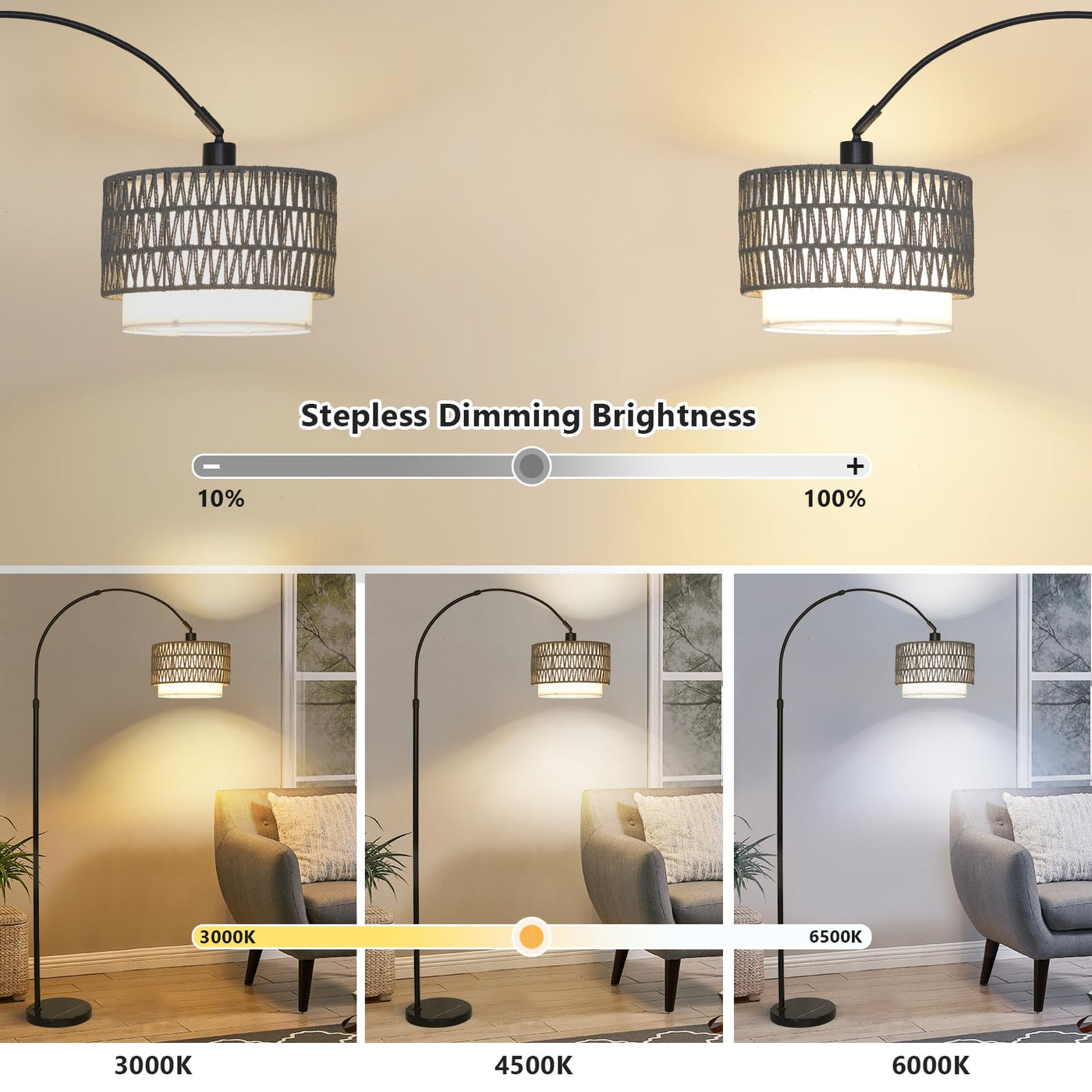 Boho Floor Lamps For Living Room, Arc Floor Lamp For Bedroom With Remote And Dimmable Bulb, Over Couch Standing Lamp, Farmhouse
