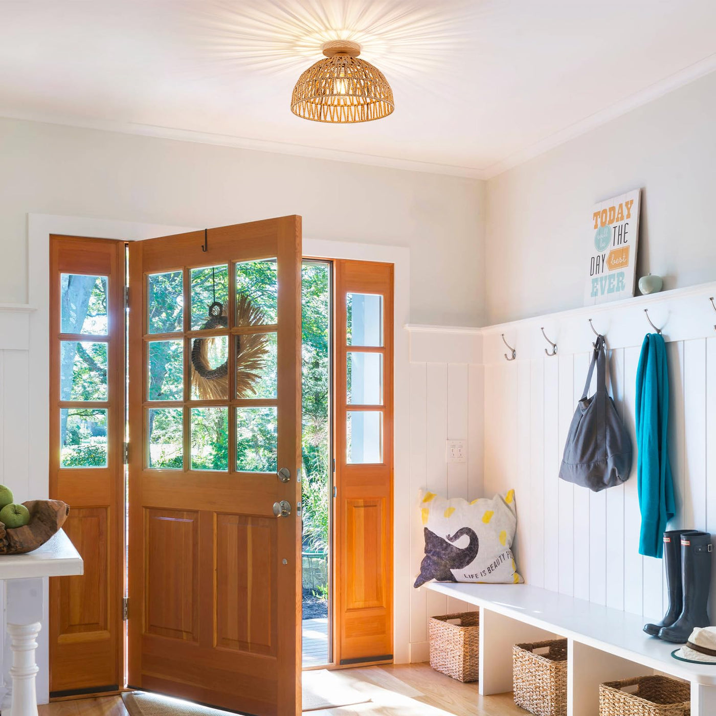 Rattan Chandelier Specification Retro Design Meets Vintage Craftsmanship In Our Boho Light Fixture Ceiling Mount,The Dome Lampshade Reflects The Vidid Light Throughout Your Room Ceiling,Creating A Charming Shadow And A Warm Ambience.If You Like A Boho Style, This Rattan Ceiling Light Is Perfect!! Voltage:Ac120V Power Source:Hardwired Power Max.:60W Material:Metal/Rattan/Wooden Shade Color:Wooden Mount Type:Flush Mount Chandelier Light Direction:Multiple Directions Color:Brownchandelier Size: Diameter12.6 Inches* Height*8.6 Inches, Lamp Base 5.1Inches. Bulb Socket:E26 Recommended Bulb:Led/Incandescent/Halogen/Fluorescent/Dimmable Bulb Widely Use:The Beach Light Fixture Is Perfect Gift For House Warming Family Or Friends,Ideal For Foyer,Kitchen Island,Dressing Room,Hallway,Entryway,Bedroom,Dining Room,Living Room,Bathroom,Home Office.