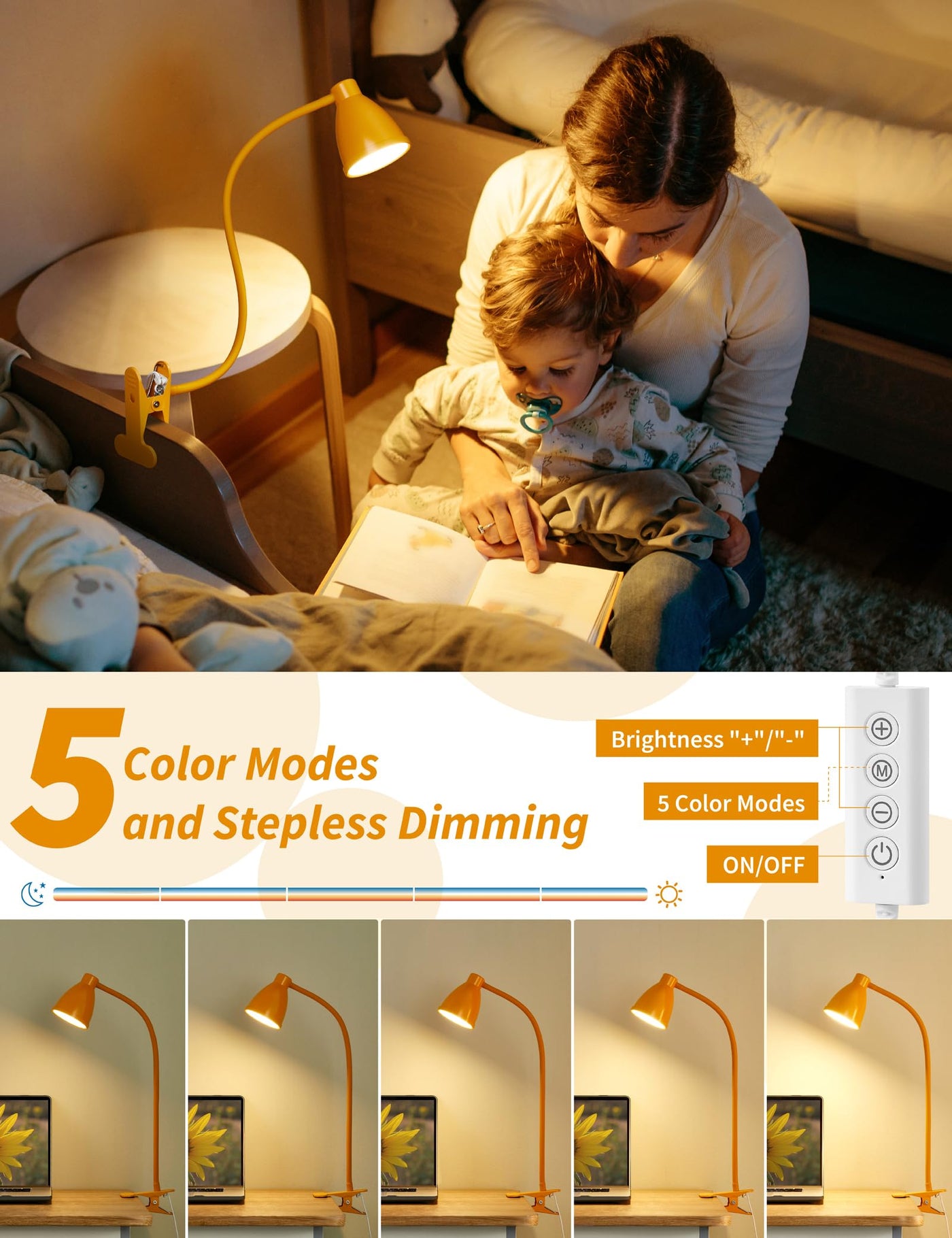 Q: What are the color modes available for the BOHON Clip on Light?A: The BOHON Clip on Light features 5 color modes, including warm light, excellent light, and daylight, allowing you to choose the optimal lighting for reading, working, or relaxing.