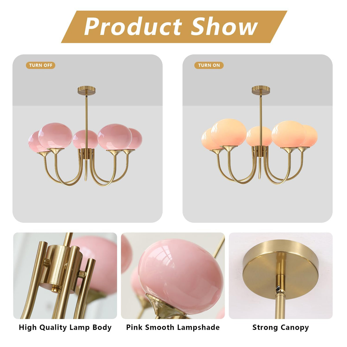 Q: What rooms are suitable for this chandelier?A: This modern pink glass chandelier is versatile and can be used in various spaces such as the living room, bedroom, dining room, kitchen, foyer, and even commercial settings like cafes and bars.