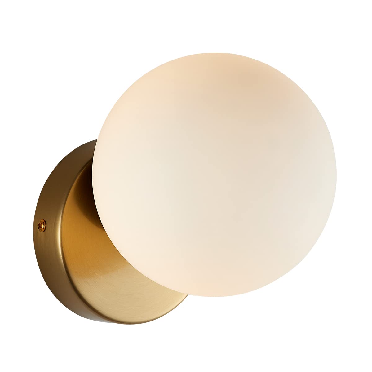 Bokt Mid Century Modern Gold Wall Sconce Lighting Fixture Small Milky Glass Globe Indoor Wall Lamp Brushed Brass Bathroom Wall Mounted Sconce 1-Light Vintage Wall Light (5.9”)