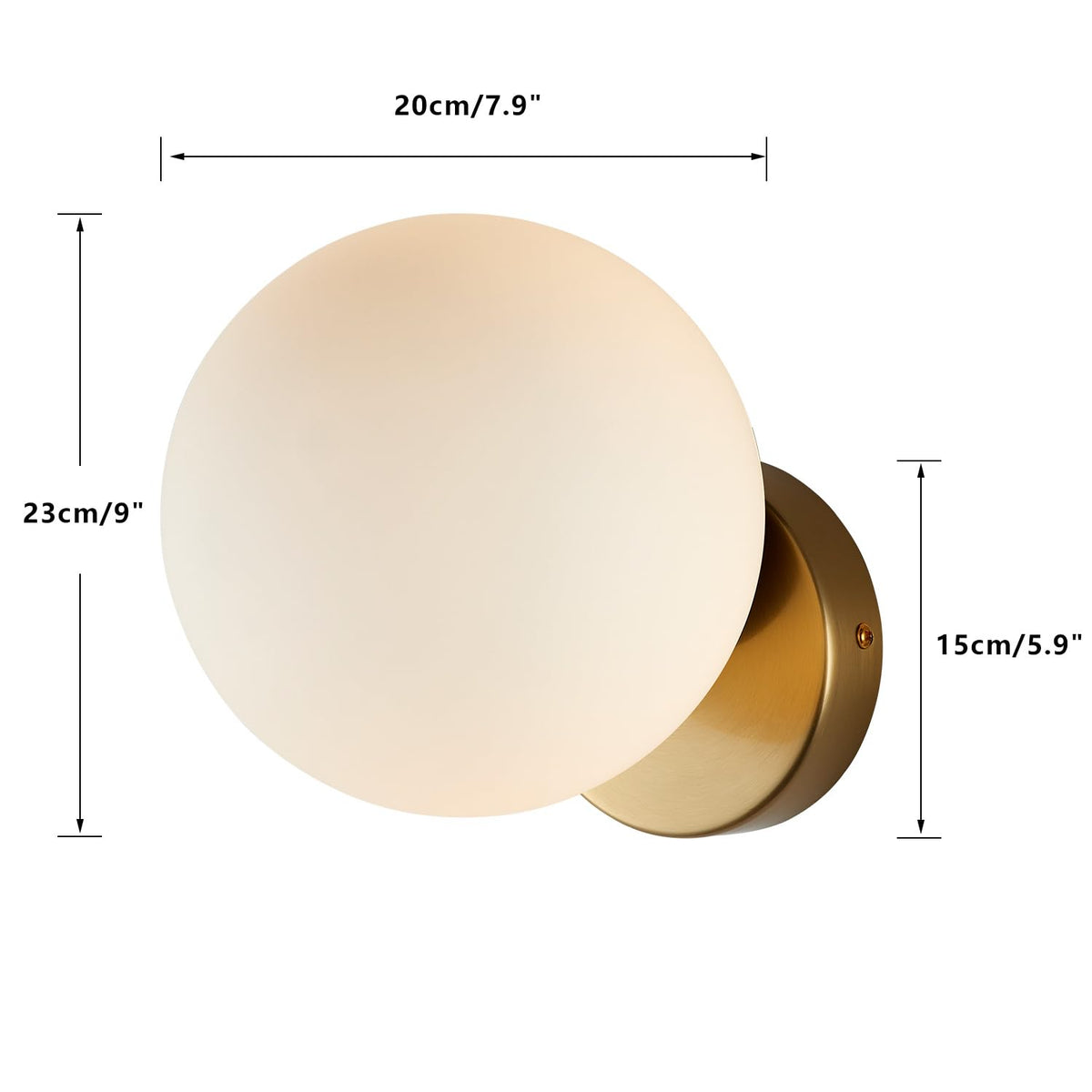 Q: What are the dimensions of the sconce?A: The BOKT Wall Sconce has a height of 7.1 inches (18 cm) and a globe diameter of 5.9 inches (15 cm). The canopy size measures 4.7 inches (12 cm), making it a compact yet stylish addition to your decor.