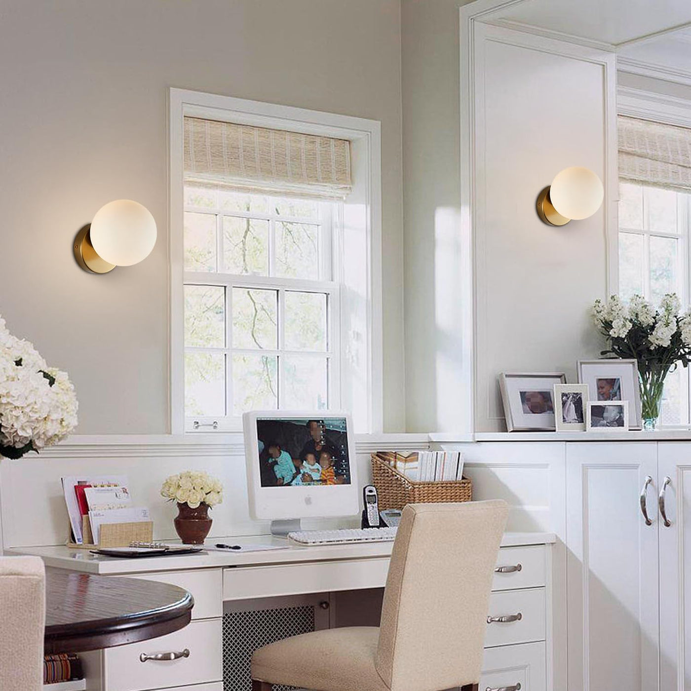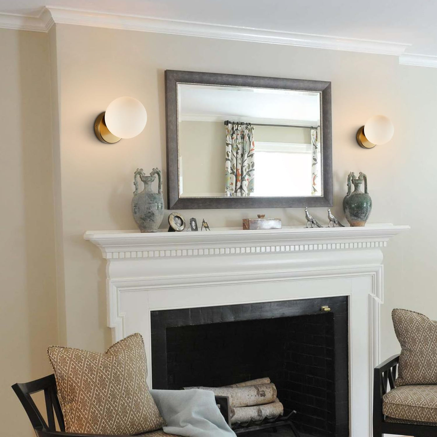 the graceful modern bedroom wall sconce combing a glass globe and a well quality mouting canopy in a steady appearance and fully dimmable with a compatible dimmer switch (not included). this wall sconce can provide the perfect atmosphere for entry,kitchen, living room, bathroom, and bedside. Requires one medium base 60W bulb (sold separately). small globe bulb. G45 will fit.
