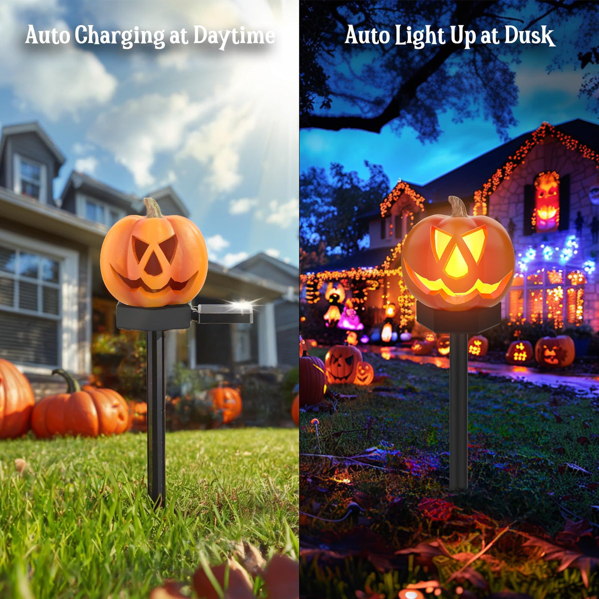 Bomier Halloween Outdoor Decorations - 4 Solar Jack O' Lantern Pumpkin Lights For Fall Decor