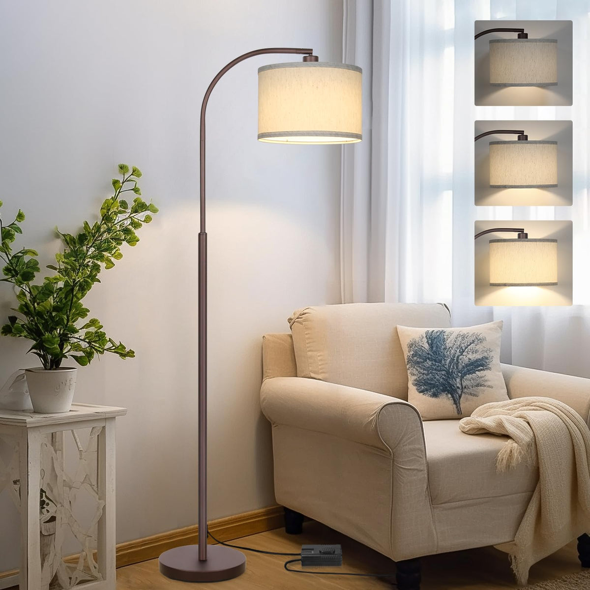 Boncoo Dimmable Floor Lamp, Arc Standing Lamp With Stepless Dimmer, Brown Floor Lamp With Adjustable Linen Beige Shade For Livin