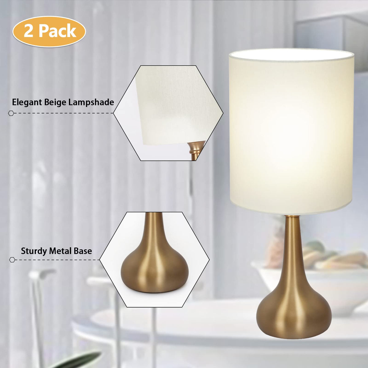 - **Stylish Vase-Inspired Aesthetic**: Featuring a beautiful brass finish and elegant beige cylinder lampshades, these lamps add a touch of upscale decor to any bedroom or living room, making them a stunning addition to your nightstand or TV bench.