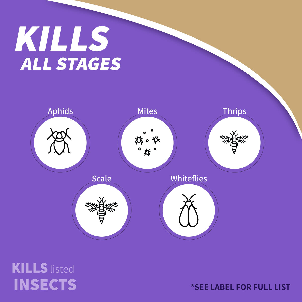 KILLS TWO WAYS: This versatile product kills pests through direct contact and ingestion. Simply spray insects like aphids directly, or allow leaf-feeding insects like worms and caterpillars to consume treated surfaces for effective results.