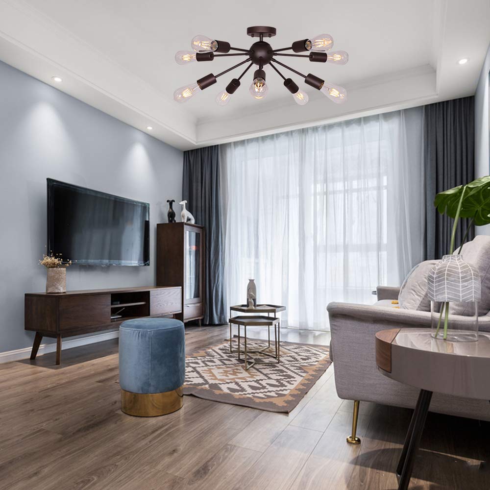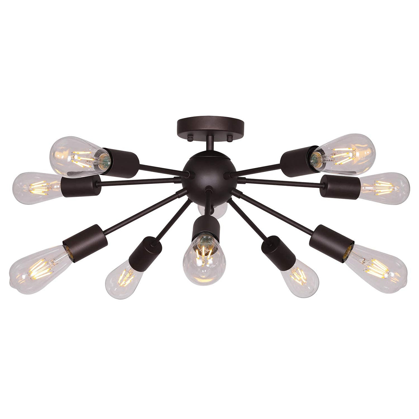 BONLICHT 10-Light Semi Flush Mount Chandelier, Oil-Rubbed Bronze, Metal, Model 3006-10C-BR, Mid Century Modern Starburst Design