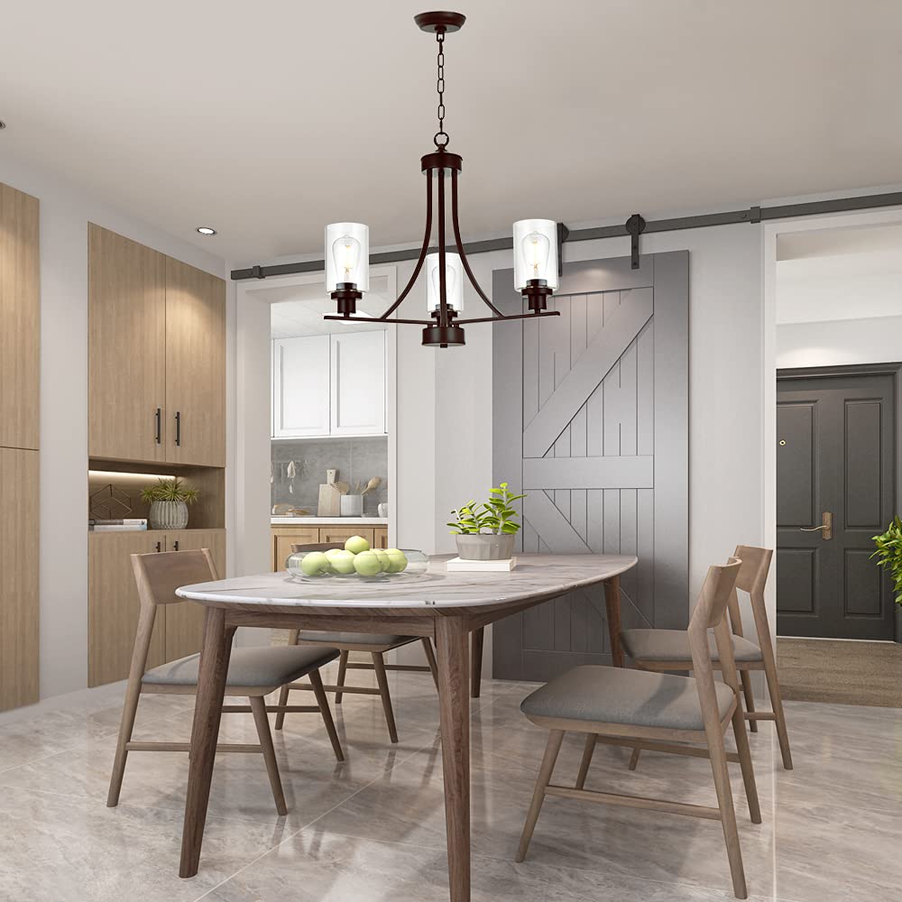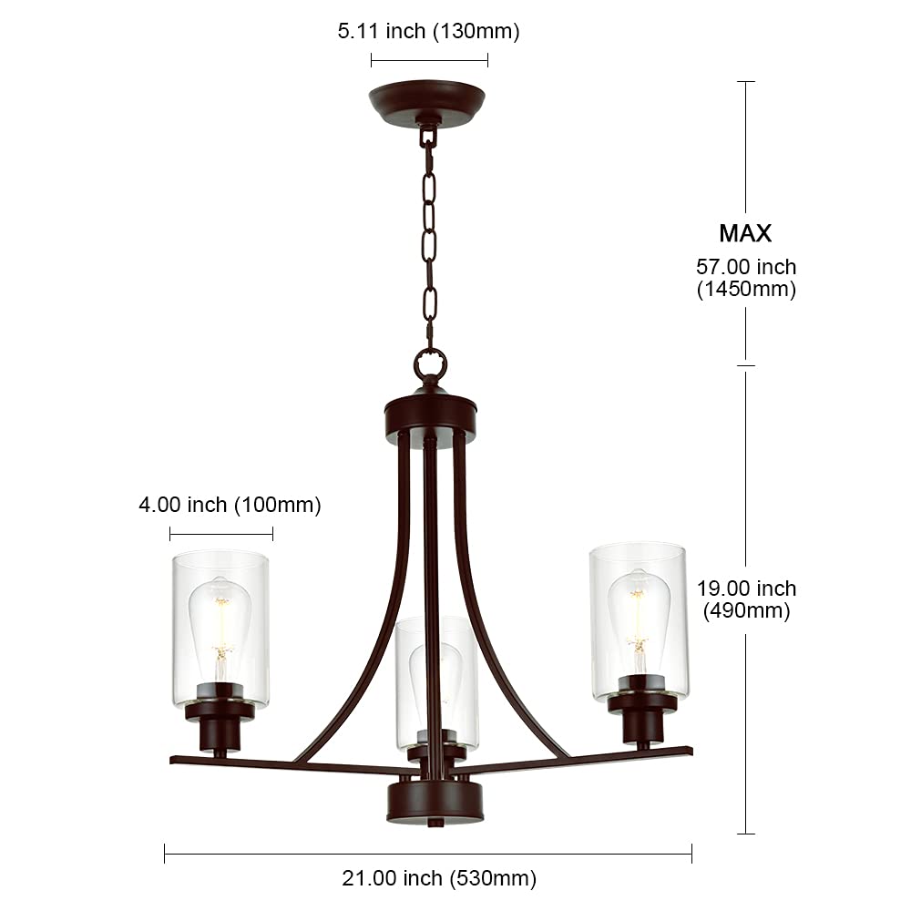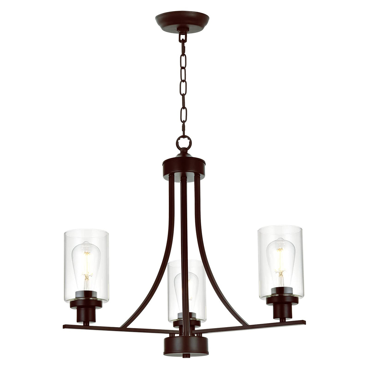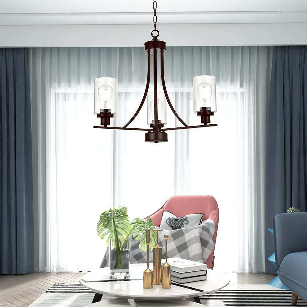 Bonlicht 3-Light Oil-Rubbed Bronze Chandelier With Clear Glass For Rustic Kitchen & Dining Room