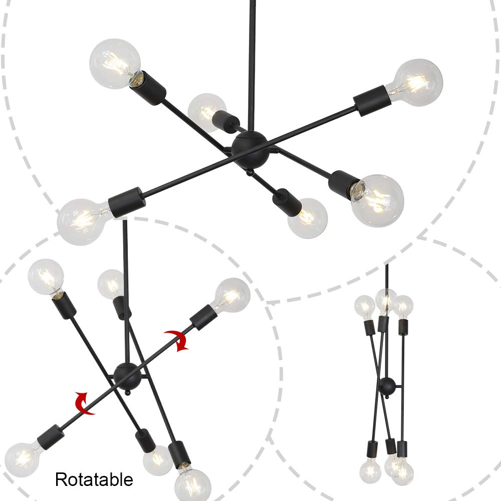 - **Modern Sputnik Design**: Featuring a striking design inspired by Sputnik-style lighting, this chandelier boasts adjustable arms that provide a unique and eye-catching look. Perfect for enhancing the ambiance in spaces ranging from 20 to 35 square meters.