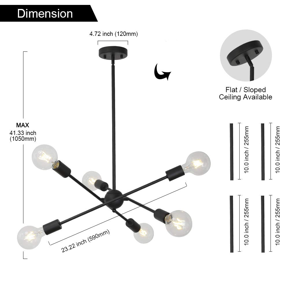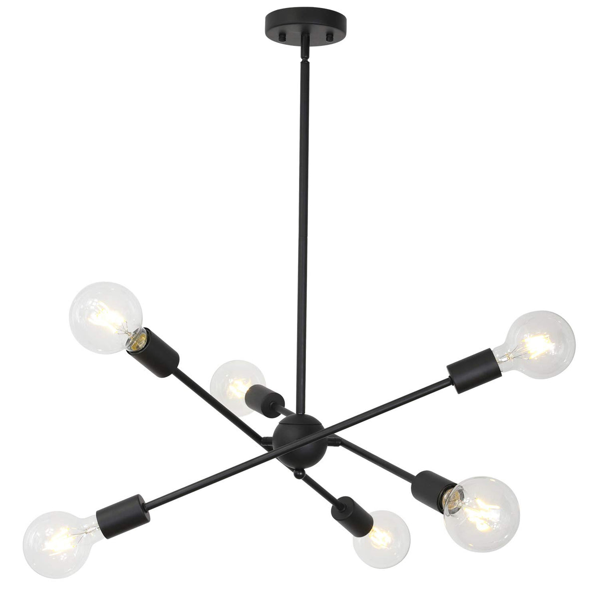 Bonlicht 6-Light Sputnik Chandelier - Black Metal Mid Century Pendant Light For Dining Room