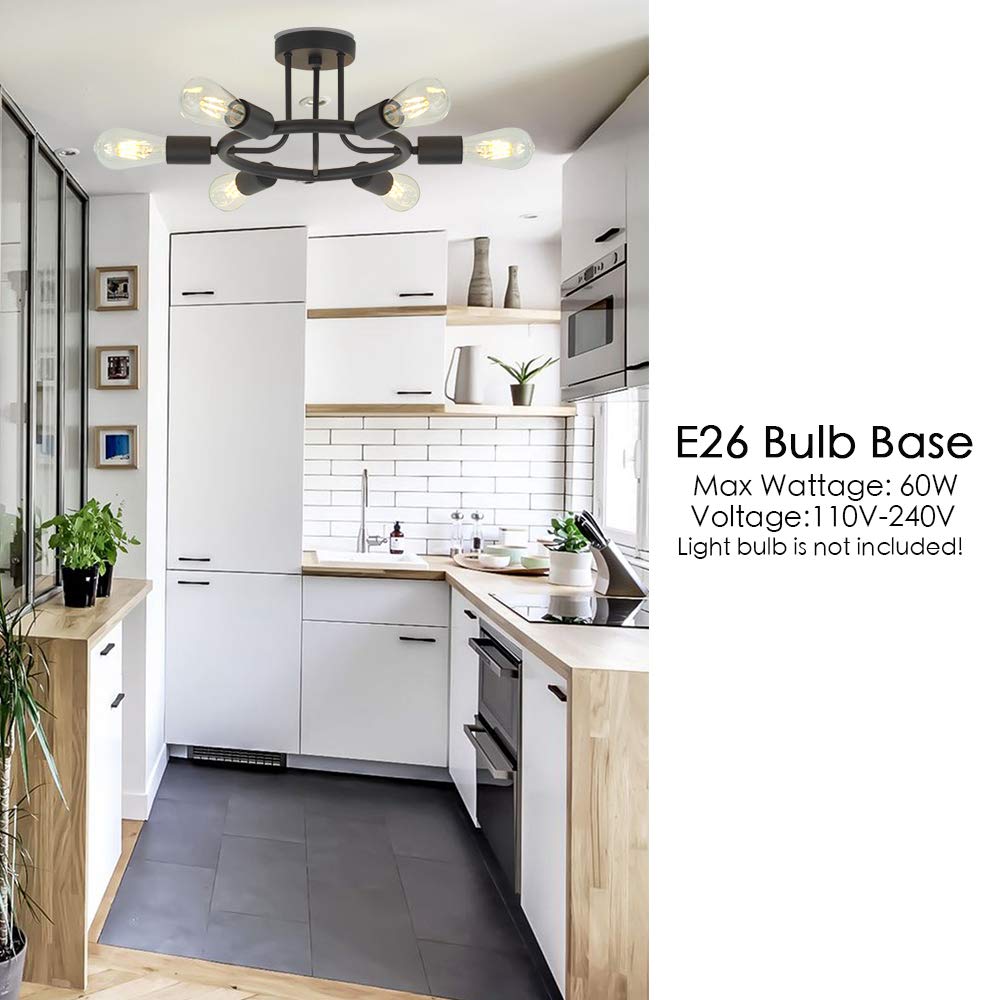 BONLICHT 6-Light Sputnik Chandelier, Black Metal Semi Flush Mount, Model 3020-6C-BL, Industrial Starburst Style for Kitchen/Dining Room