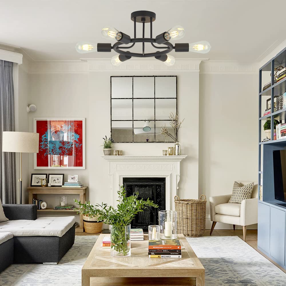 The BONLICHT six-light semi-flush ceiling fixture is a stylish and versatile lighting solution designed to enhance the ambiance of various spaces in your home. Ideal for kitchens, dining rooms, living rooms, foyers, coffee shops, bars, and more, this fixture combines rustic, industrial, and minimalist design elements to complement any decor.