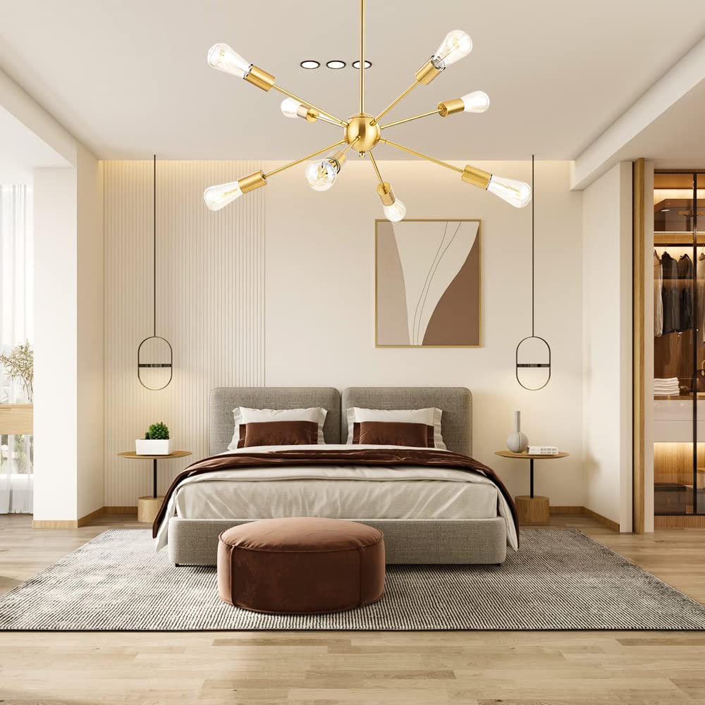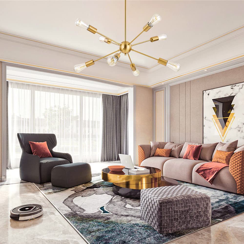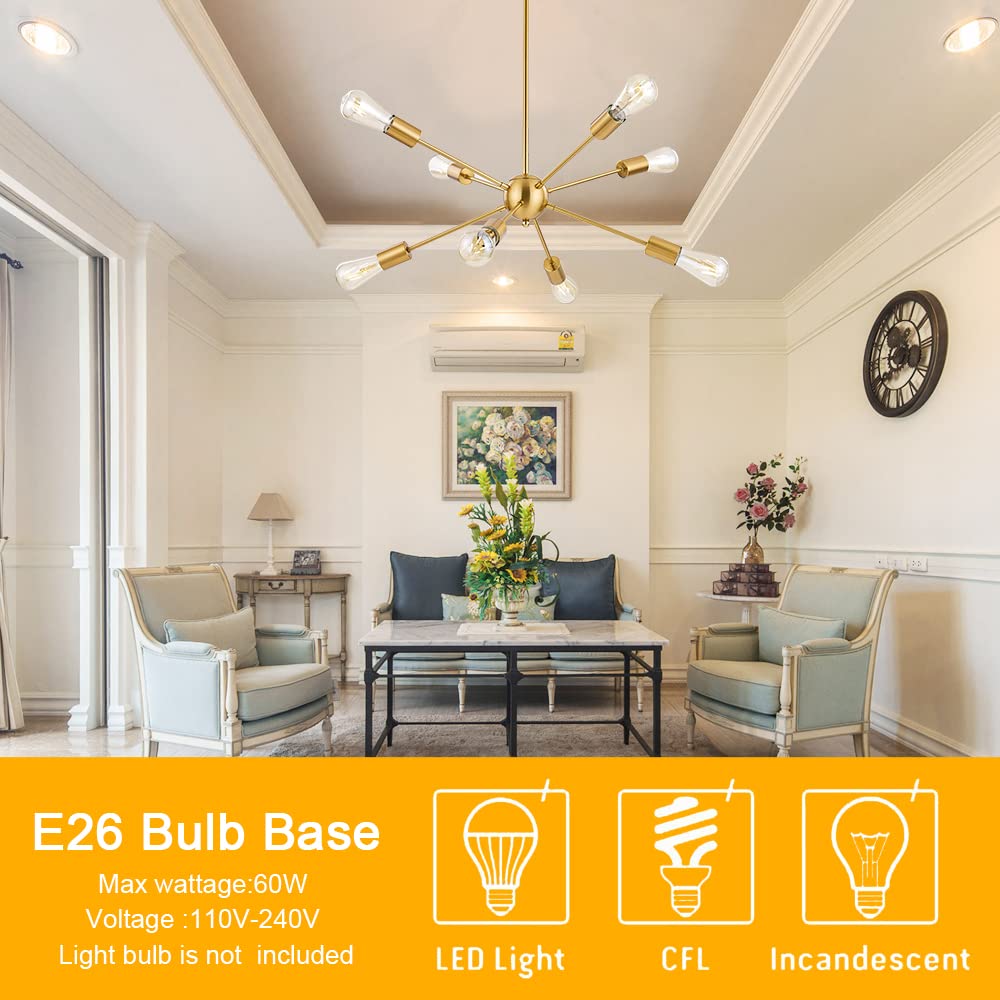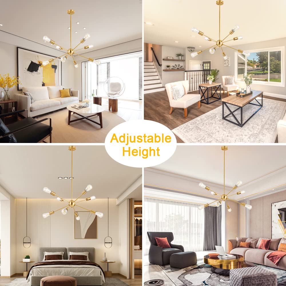 The Brushed Brass Sputnik Chandelier Diffuses A Cozy Glow For An Inviting Feel And Offers A Modern & Eye-Catching Style While Complementing Your Home Decor.