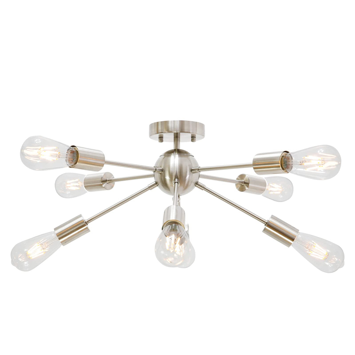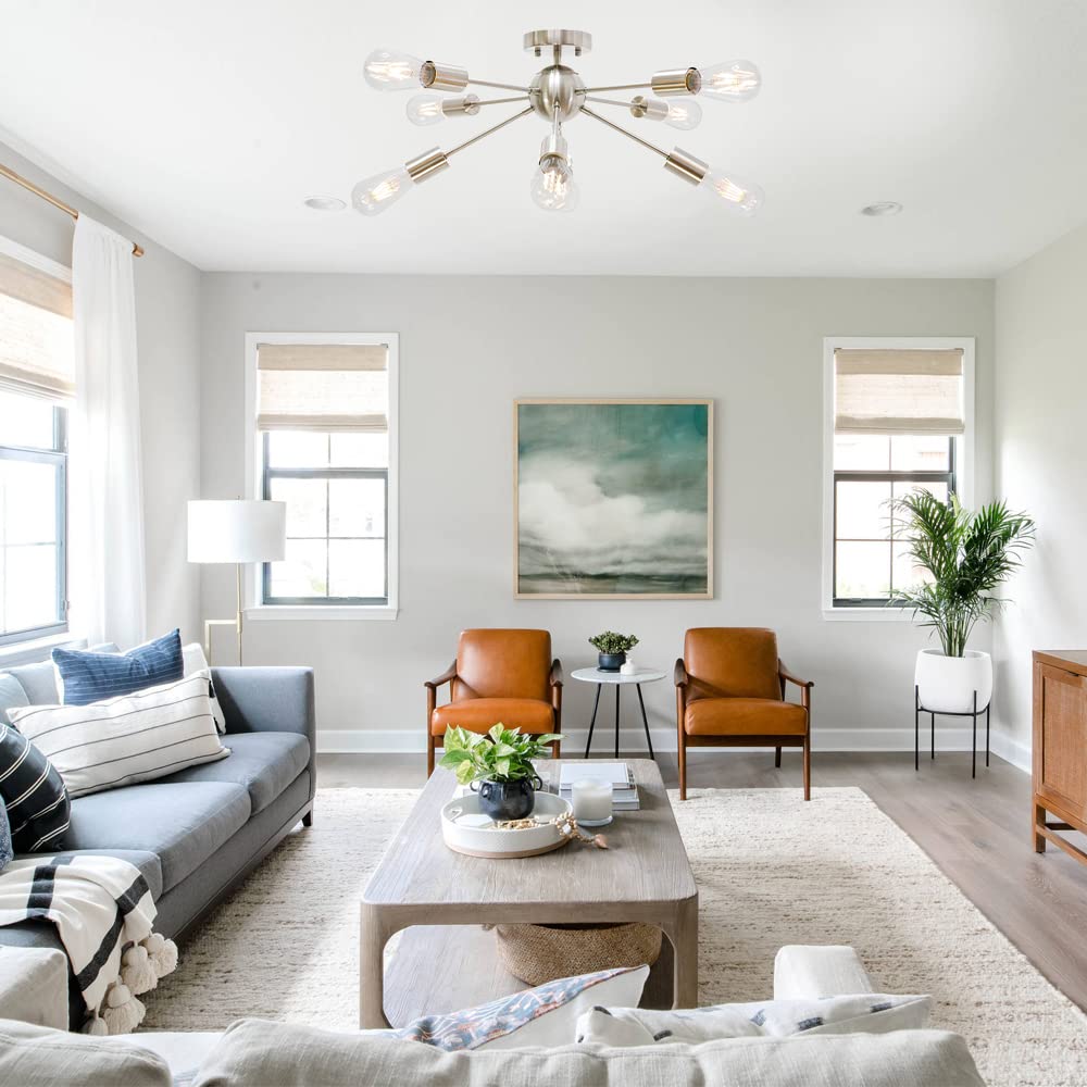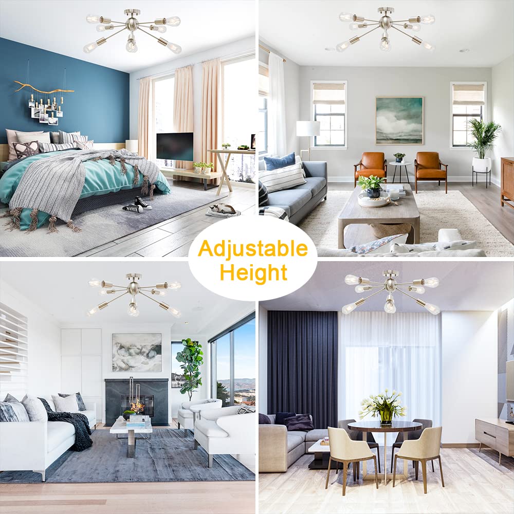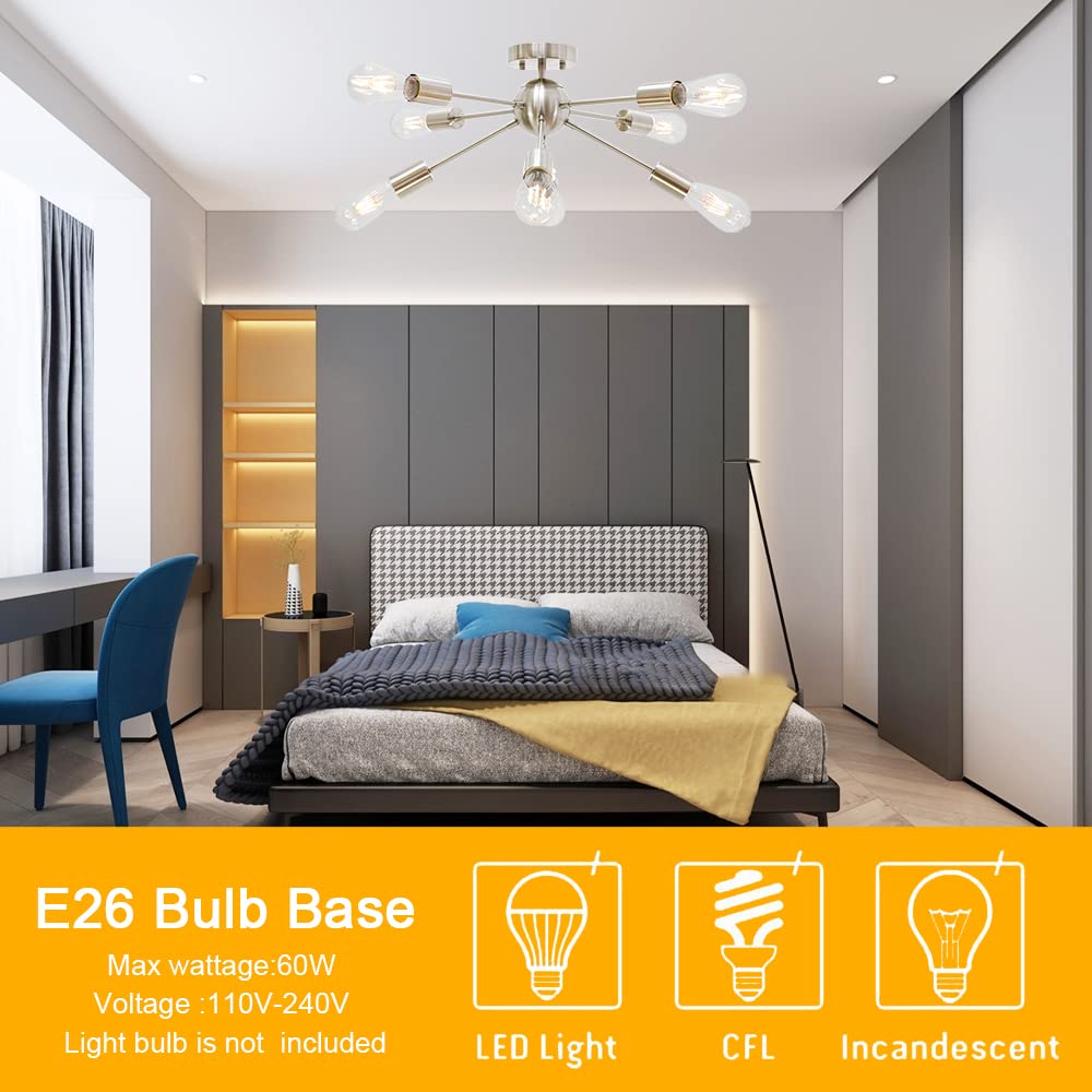 BONLICHT Contemporary 8 Light Sputnik Chandelier, Brushed Nickel, Semi Flush Mount Ceiling Light for Kitchen, Dining Room, Bedroom