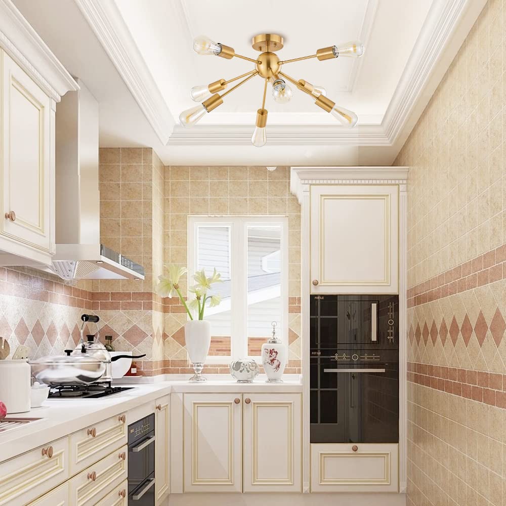 BONLICHT Sputnik Ceiling Light Modern Chandelier 8 Light Brushed Brass Semi Flush Mount for Kitchen Dining Room Bedroom