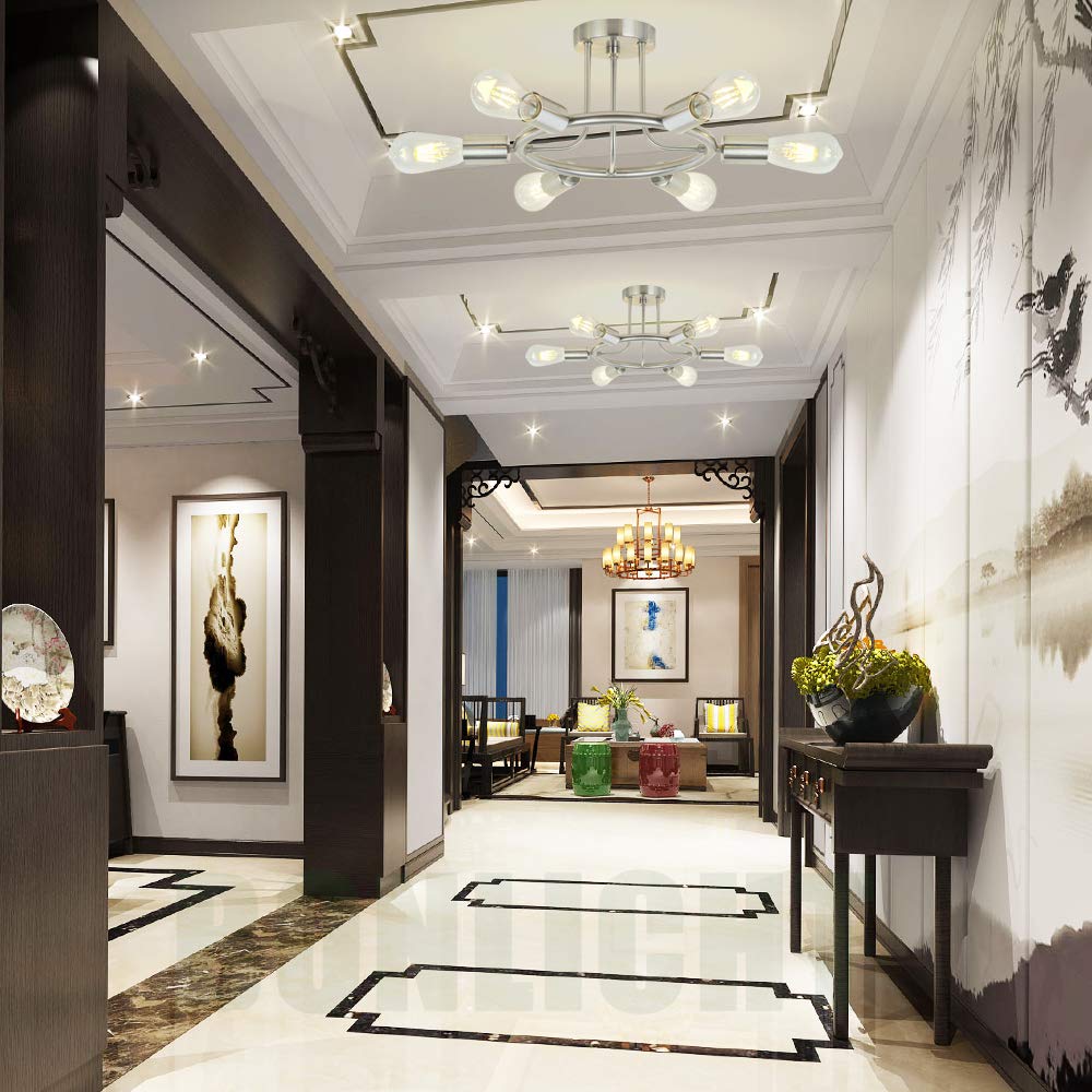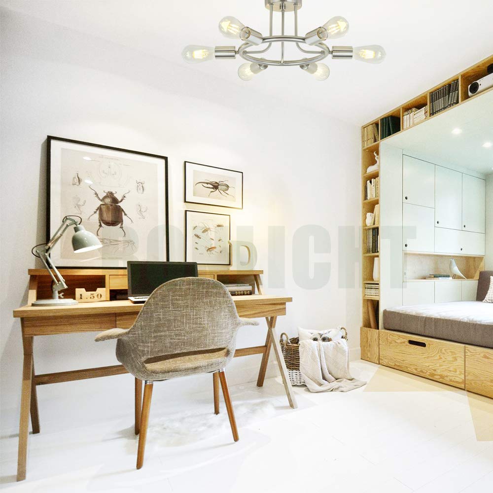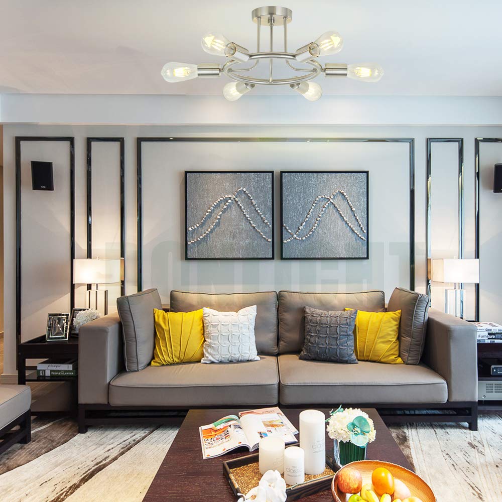 BONLICHT Sputnik Chandelier 6 Light Brushed Nickel Modern Starburst Semi Flush Mount Fixture Model 3020-6C-SN