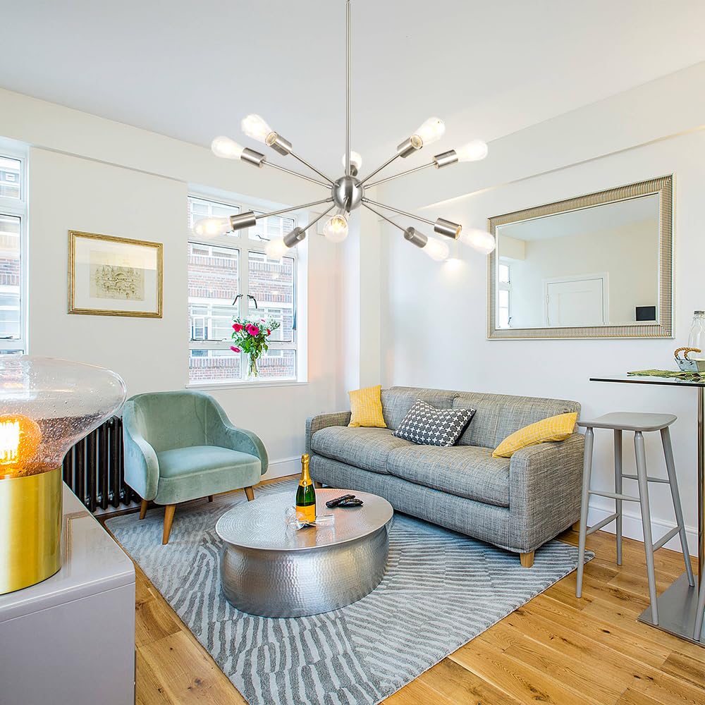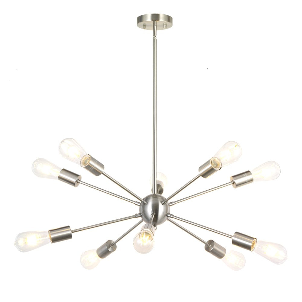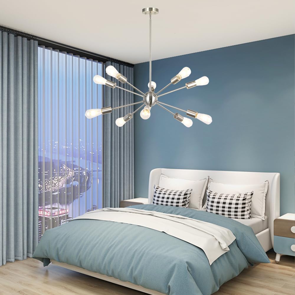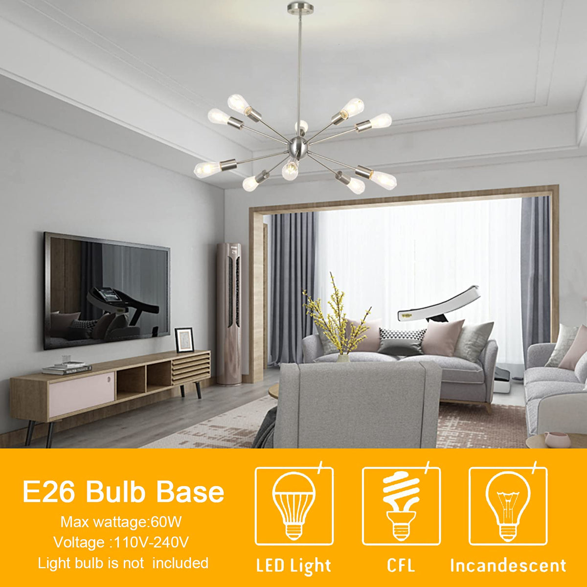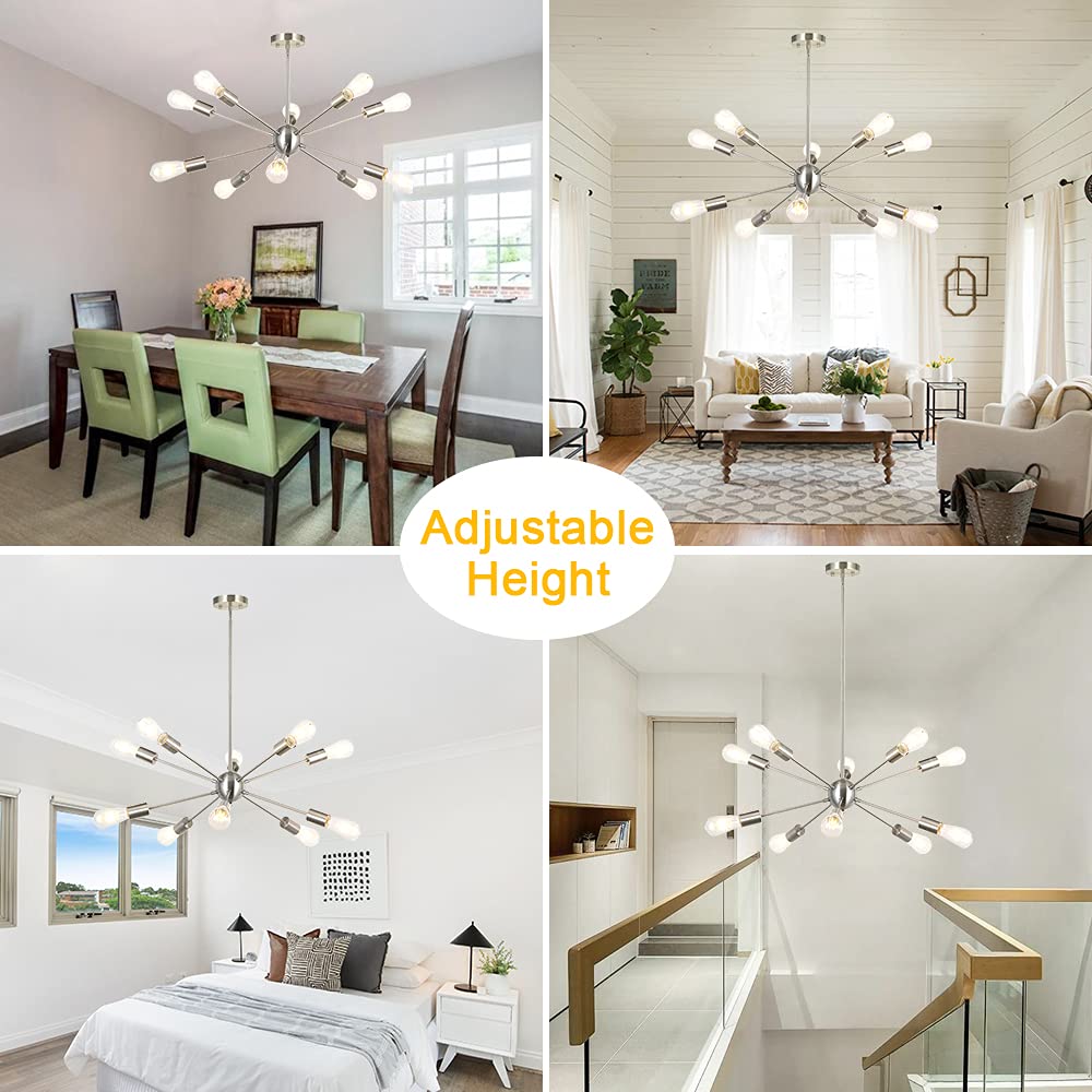 Bonlicht Sputnik Chandelier Lighting 10 Light Chandelier Modern Starburst Chandelier Mid Century Pendant Lighting Brushed Nickel