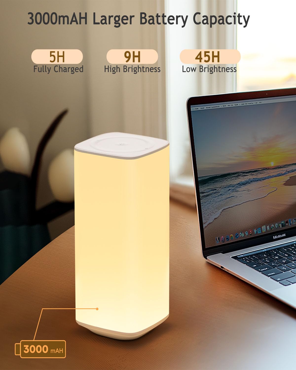 Q: What is the battery life of the Bonsery lamp?A: With a built-in 3000mAh battery, the Bonsery lamp offers between 9 to 45 hours of use on a single charge, depending on the brightness and mode selected.