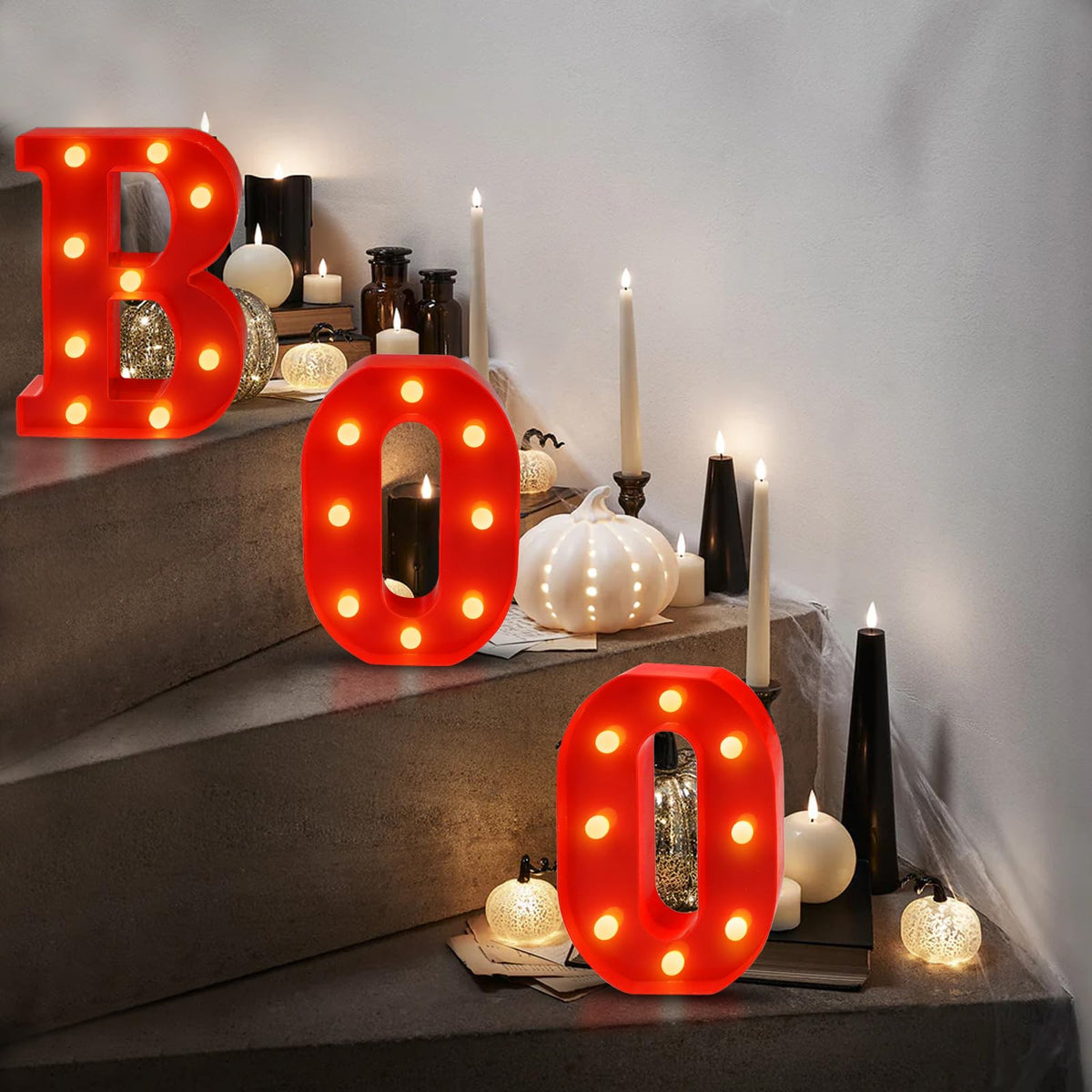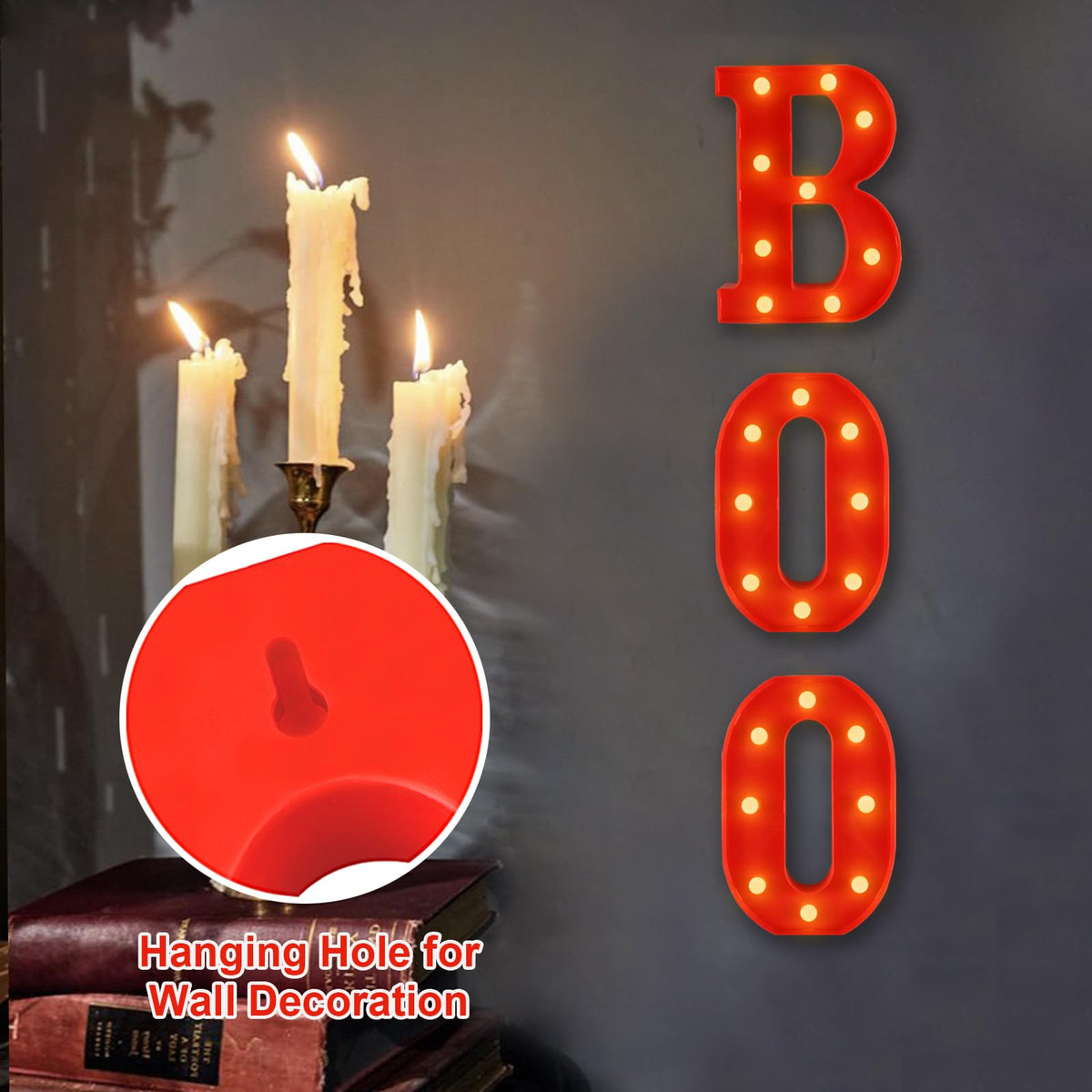 Boo Sign Light Up Halloween Decorations Indoor, Boo Decor 8.5 Inch BOO LED Marquee Letters Lights Signs, Battery Powered Hallowe