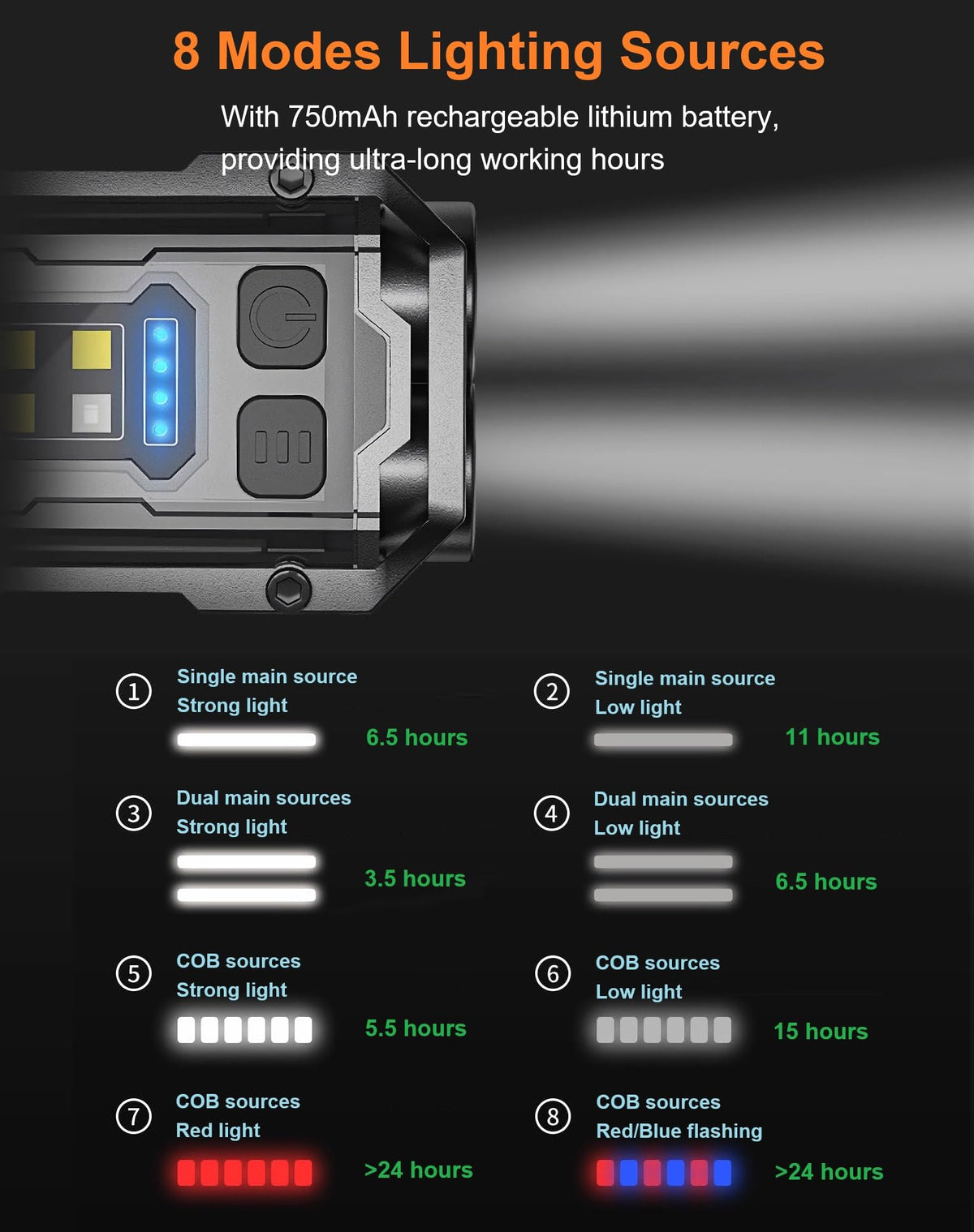 Clip on Flashlight, Rechargeable Mini EDC Keychain Flashlight, Compact Pocket Light for Night Working, Running, Camping, Fishing, Hiking, USB C Charging, Warning Flashing Light Dog