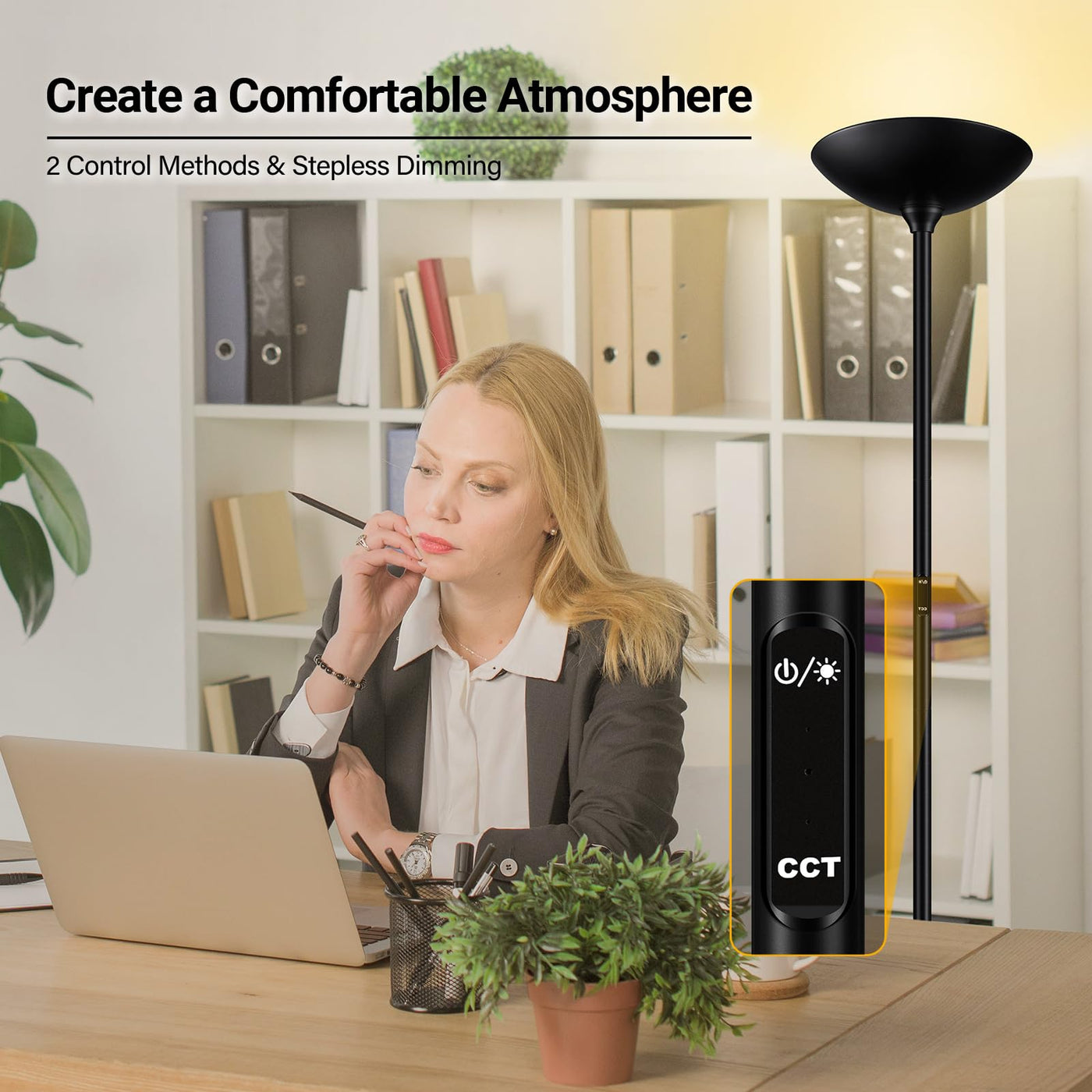 Stepless Dimming & Two Kinds Of Control; This Led Floor Lamp Is Designed With A Step-Less Dimmer,Controlled By A Touch Button And Remote(With A Range Of 16.5Ft) ; The Lighting Brightness Of The Modern Floor Lamp Can Be Adjusted From 5% To 100% (Or 100% To 5%) As Needed; With The Memory Function, The Standing Lamp Will Remember The Brightness You Set Last Time, Which Brings More Convenience To You Energy-Saving Leds With Long Lifespan; Boostarea Offer Sustainable Led Floor Lamps To Protect The Planet; This 30W Floor Lamp (250W Incandescent Lamp Equivalent) Adopts High-Efficiency Led Beads, Its Low Power Consumption Ensures Over 50,000Hrs Lifespan And Reduces Electricity Bills By Up To 90% Compared To The Traditional Bulb; The 3000Lm Bright Floor Lamp Can Illuminate A Regular Bedroom Or Small Living Room; 2700K-6500K Color Temperature To Meet The Needs Of Various Family Environments Whole Metal And Safety; Safety Is Paramount, Adopting Sturdy Metal Material From The Base To Head, This Tall Floor Lamp Ensures Great Stability, Passed The Ul 8? Stability So This Dimmable Floor Lamp Is Stable Enough For People Who Have Baby Or Pets; Besides, You Don'T Have To Worry About The Overheating Issue, Since The Black Floor Lamp Comes With Premium Led Beads, The Led Floor Lamp Will Keep Cold Touch Even After A Long Time Of Use Easy Assembly And Stylish Design; No Extra Tools Needed, The Standing Lamp Can Be Set Up Within 10 Mins, You Just Need To Screw All The Parts Together By Following The Installation Video Or Instruction; Thanks To Its Compact Size And Modern Design, The Floor Lamp Can Match A Variety Of Home Decor Styles; The Black Floor Lamp Can Be Floor Lamps For Bedrooms, Floor Lamps For Living Room, And Floor Lamp For Office; More Than A Lamp, This Torchiere Floor Lamp Is A Decoration As Well Idea For House And Compatible With Smart Devices; This Floor Lamp Is A Great Choice For Weddings, New Homes, Or Daily,This Remote Control Standing Lamps From Industrial To Modern Or Traditional Decoration.The Design Is Simple And Elegant, And Can Be Easily Placed In Any Room Of The House.You Can Connect This Standing Lamp To A Smart Device (Not Included), Add It To Your Home Appliances Group,The Intelligent Design Allows You To Enjoy A Comfortable Life And Home Automation.