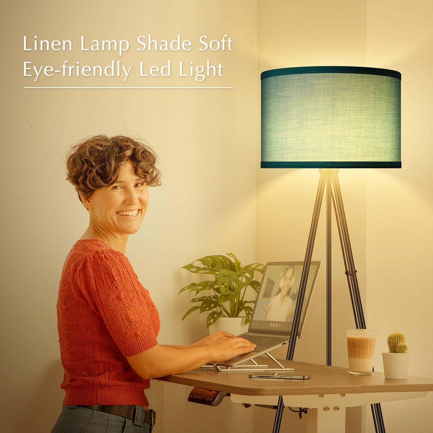 Boostarea Floor Lamp For Living Room, Tripod Floor Lamp, Green Linen Lamp Shade, Blub Not Included,Mid Century Standing Lamp For