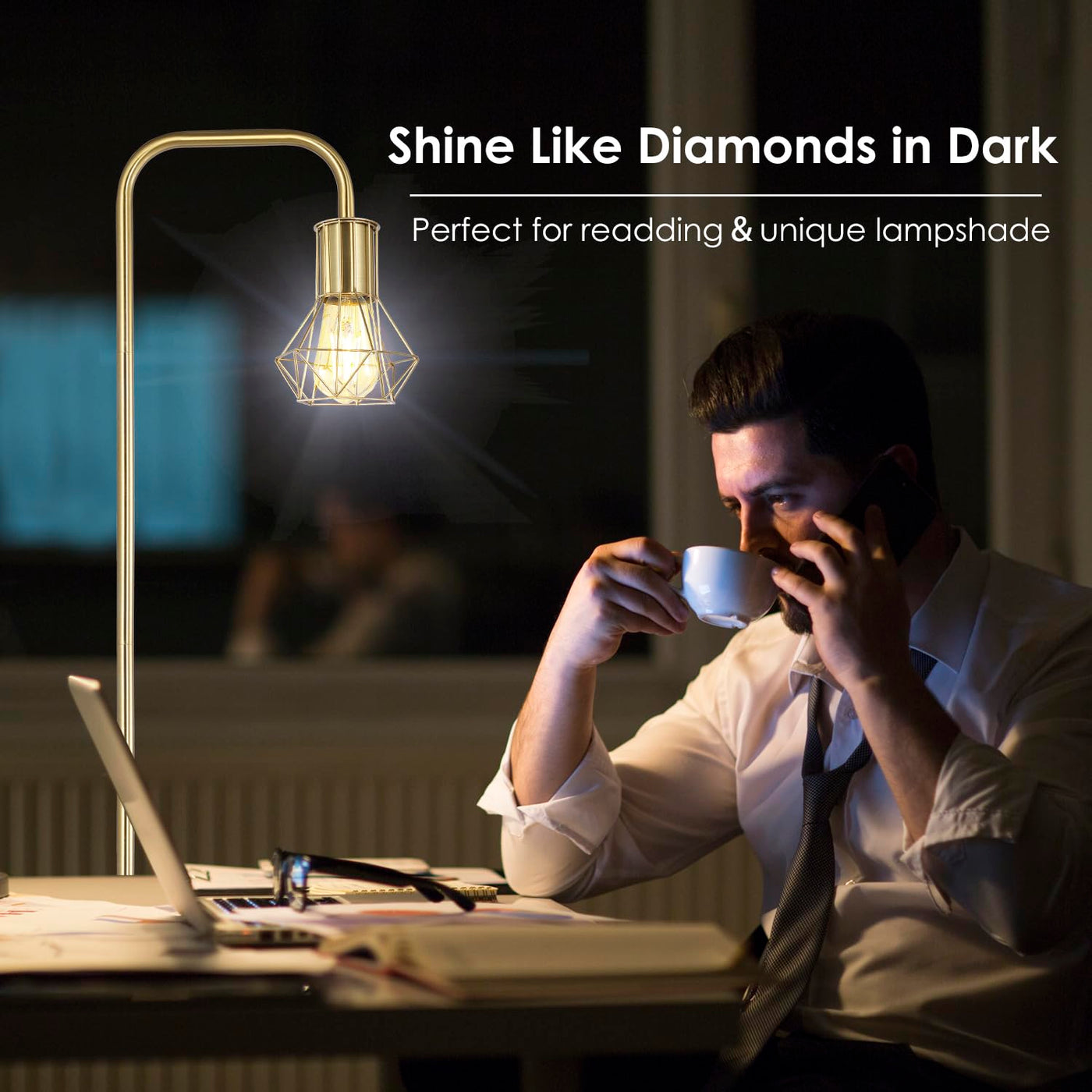 With A Diamond-Shaped Lampshade, This Standing Lamp Is More Like A Room Decor. Suitable For Bedroom, Living Room, Office, Farmhouse. Come With 6W Led Bulb, Better For Piano Room And Makeup. The Whole Body Is Made Of High-Grade Metal Materials. The Weighted Base Prevents The Standing Lamp From Falling Down. Without Tools Required, You Just Need To Screw All The Parts Of The Standing Lamp Together To Finish The Assembly Within Just 5 Minutes. To Follow The Idea Of Minimalism, This Gold Floor Lamp Adopts A Foot Pedal Switch, Which Allows Turn On/Off With Just One Step On, Hands-Free. Foot Switch Design Is Not Only Convenient But Also Gives The Farmhouse Floor Lamp An Elegant Look, Without Cords Exposed.