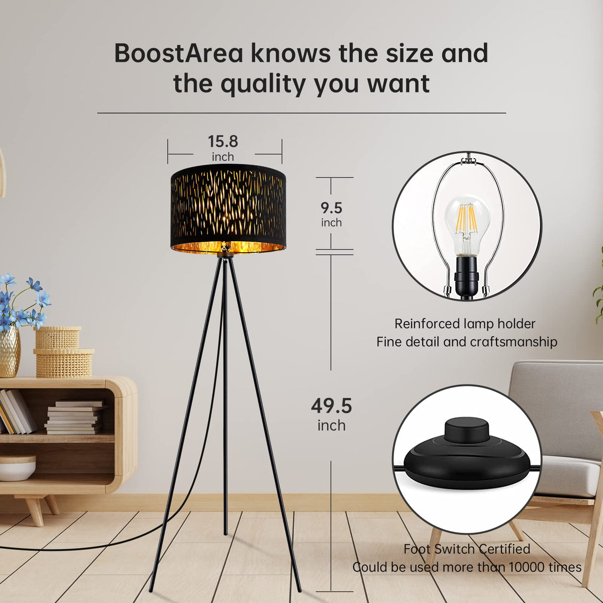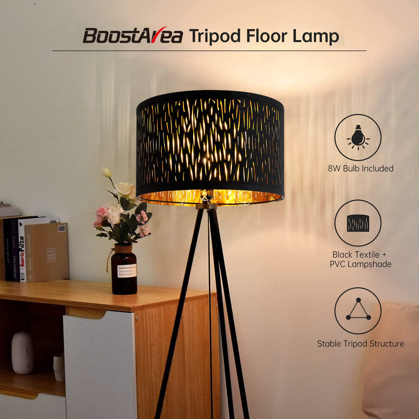 Boostarea Floor Lamp, Tripod Floor Lamp, 8W Led Bulb, Decorative Lamp Shade, Mid Century Standing Lamp For Living Room, Bedroom,
