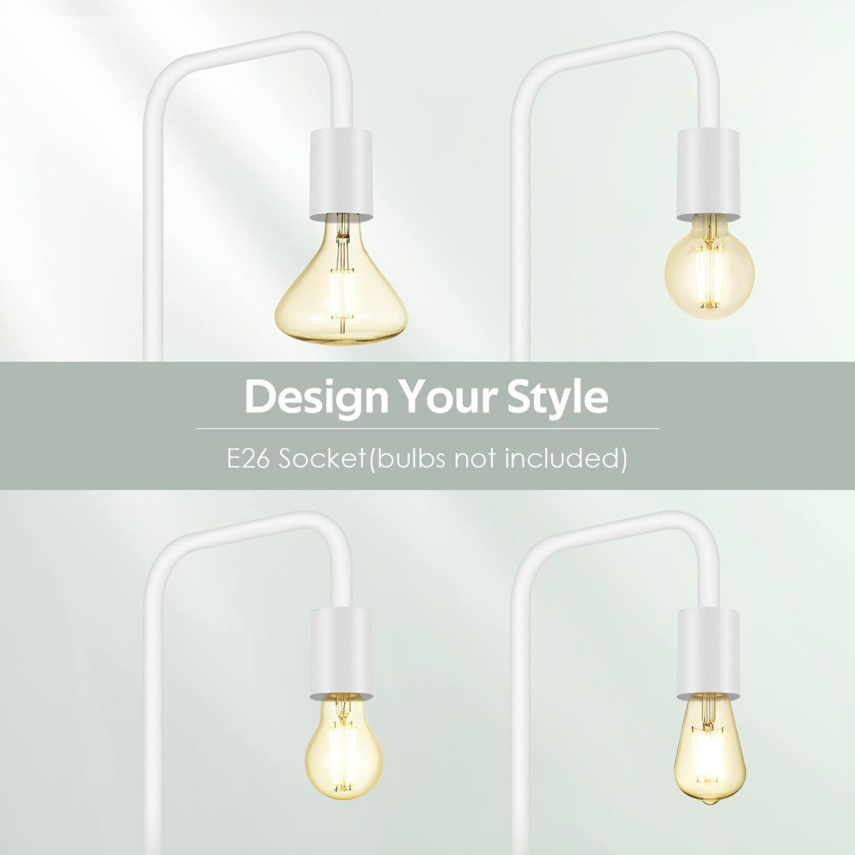 Boostarea Industrial Floor Lamp Is Your Ideal Answer; This Standing Lamp Comes With A Built-In E26 Standard Base Socket (Bulb Not Included), Which Gives You Much More Space To Design It According To Your Home Style And Your Own Taste; When Using Different Shapes And Colors Of Bulbs, The Floor Lamp Gives Various Looks; Change The Bulb, Change The Look; Tips: Only For E26 Bulbs Boostarea Industrial Floor Lamp Made With Matte White Metal, Without Complex Adds, This Minimalist Floor Lamp Offers A Comfortable And Delightful Ambiance To Your Home With The Modern Pole And Exposed Bulb (Bulb Not Included); Less Is More, Thanks For The Simple Design, This Standing Lamp Leaves Space For You To Diy, You Are The Designer For Your Unique Room; Pick It As The Floor Lamps For Bedroom Or Living Room, Enjoy With Vintage, Mid-Century Or Contemporary Styles Easy Assemble And Use; This 63 Inches Tall Floor Lamp Is Easy To Assemble Without Any Tools, You Just Need To Screw All The Parts Together Via Following The Instruction On The Page; 6 Ft Cord And Its Compact Base Allow You To Move The Modern Floor Lamp In Any Corner Of Your Room, Sliding It Behind A Sofa Or Place It Beside A Cabinet As You Like; Besides, Combined With The Footswitch, You Can Easily Tap The Floor Lamp On Or Off With Your Foo Whole Metal And Etl Listed; This Industrial Floor Lamp Is 100% Made Of Metal From Head To Toe; With A Strong Metal Pole And Weighted Metal Base, This Vintage Floor Lamp Provides Good Stability From Falling, Which Is Safe For You And Your Family; Besides, This White Floor Lamp Passes Etl Safety Standard Test, It Ensures The Safety And Quality Of This Edison Floor Lamp Compatible With Smart Devices; You Can Plug This Floor Lamp In The Smart Plug (Not Included), Add It To Your Home Appliances Group, And Easily Controlled It By Your Phone; This Floor Lamp Stand Also Compatible With An E26 Smart Bulb It Is An Ideal Lamp For Bedroom, Vintage, Retro, Farmhouse, Simple Lamp For Your Room