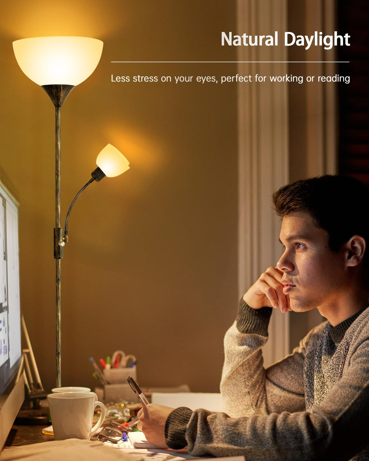 Eco-Friendly Led Bulbs; The Bright Floor Lamp Adopt Energy-Saving Led Bulbs With A 50,000 Hours Lifespan; Also, The Integrated Led Bulbs (Not Replaceable) Of The Standing Lamp Keep A Cool Touch Even After Hours Of Use Gooseneck Reading Lamp; Boostarea Floor Lamp Comes With A 9W Main Lamp And A 4W Side Lamp, The Adjustable Gooseneck Of The Side Lamp Allows You To Adjust The Angles To Illuminate Your Projects, Like Reading, Working And Daily Use; By Emitting 3000K Warm White Light, The Eye-Caring Led Floor Lamp Will Not Harm Your Eyes; Also, With The Three Options Of The Rotary Switch, You Can Choose The Main Lamp On, Side Lamp On, Or Both Lamp On According To Different Task Needs Safe And Easy Assembly; We Take Safety Seriously Into Consideration, With A Stable Base And Metal Pole, This Tall Floor Lamp Provides Good Stability From Falling, Which Is Safe For Your Baby And Pet; Simple And Easy To Assemble Within 5 Mins Without Extra Tools, You Just Need To Screw All The Parts Of The Led Floor Lamp Together Thanks For The Space-Saving Design, The Standing Lamp Can Fit Easily In Any Corner Of The Room, Slide It Behind A Sofa Or Place It Beside A Cabinet, You Can Move It Easily Into Various Places In Your Home; Besides, Its Modern Design Makes It Not Only Floor Lamps For Bedrooms, Living Room Or Office, But Also A Nice Decoration For Your Home; The Standing Floor Lamp Fits Well With Urban, Mid-Century Modern, Casual Or Contemporary Decor Compatible With Smart Devices; You Can Plug This Floor Lamp In The Smart Plug (Not Included), Or Connect It To A Wall Switch (Not Included); Add The Floor Lamp To Your Home Appliances Group Choose Our Modern Black Floor Lamp, Led Floor Lamp, Mother-Daughter Floor Lamp, Floor Lamps For Bedrooms, Kids Floor Lamp, Dorm Room Floor Lamp, Pole Floor Lamps For Living Room, Pole Lamp, Office Lighting, Room Lamp, Room Light, Floor Lamps For Living Room Bright Lighting, Floor Lamps For Living Room Clearance, And Add A Warm Touch Of Your Sweet Home