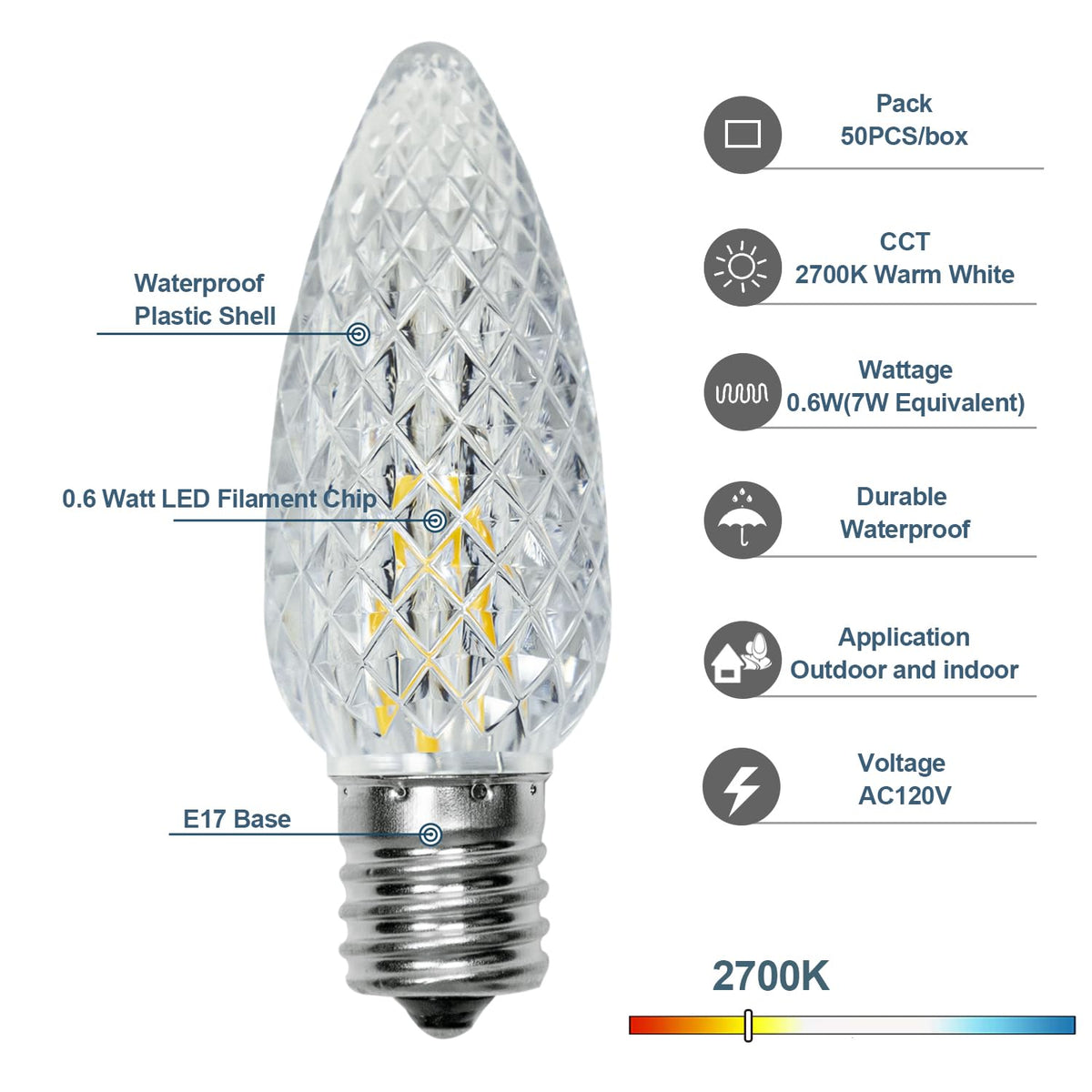 - **Bright and Soft Warm White Light**: Experience the cozy glow of warm white 2700K light with 50 lumens of brightness, ideal for enhancing your festive decorations. These bulbs seamlessly fit into C9 or E17 light sockets, making installation a breeze.