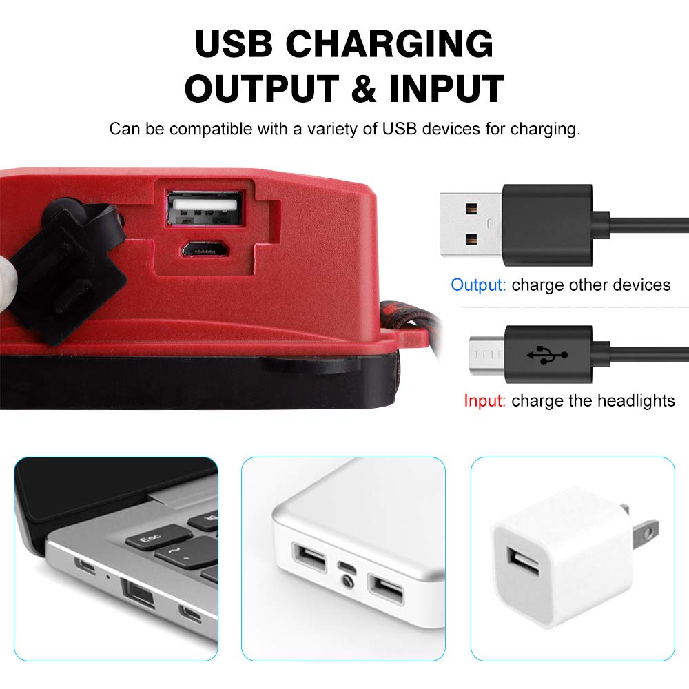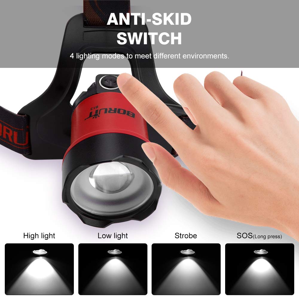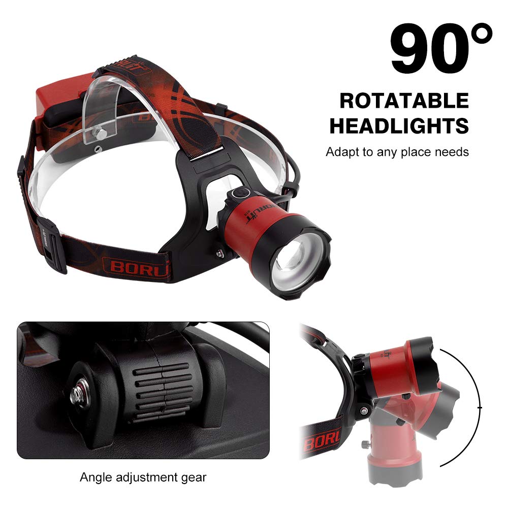 Boruit B13 Headlamp Rechargeable, Led Super Bright Head Lights For Forehead, 90 Adjustable, 4 Modes Battery Powered Head Lamp, I