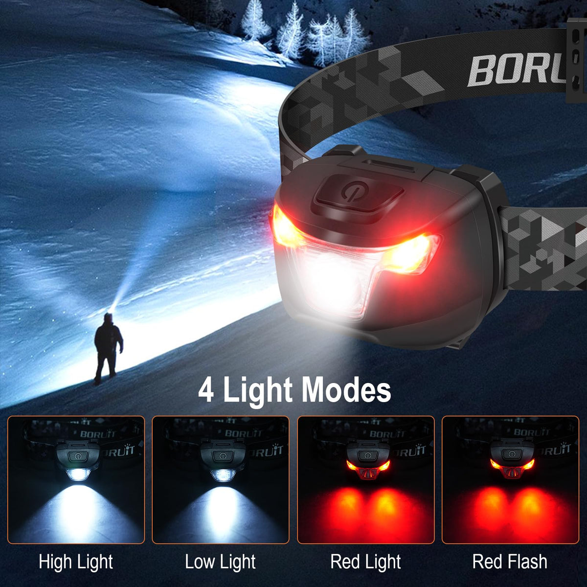 Boruit Br01 Headlamp With Red White Light - Aaa Battery Powered Led Head Lamp, Super Bright 4 Modes Head Flashlight For Kid Adul