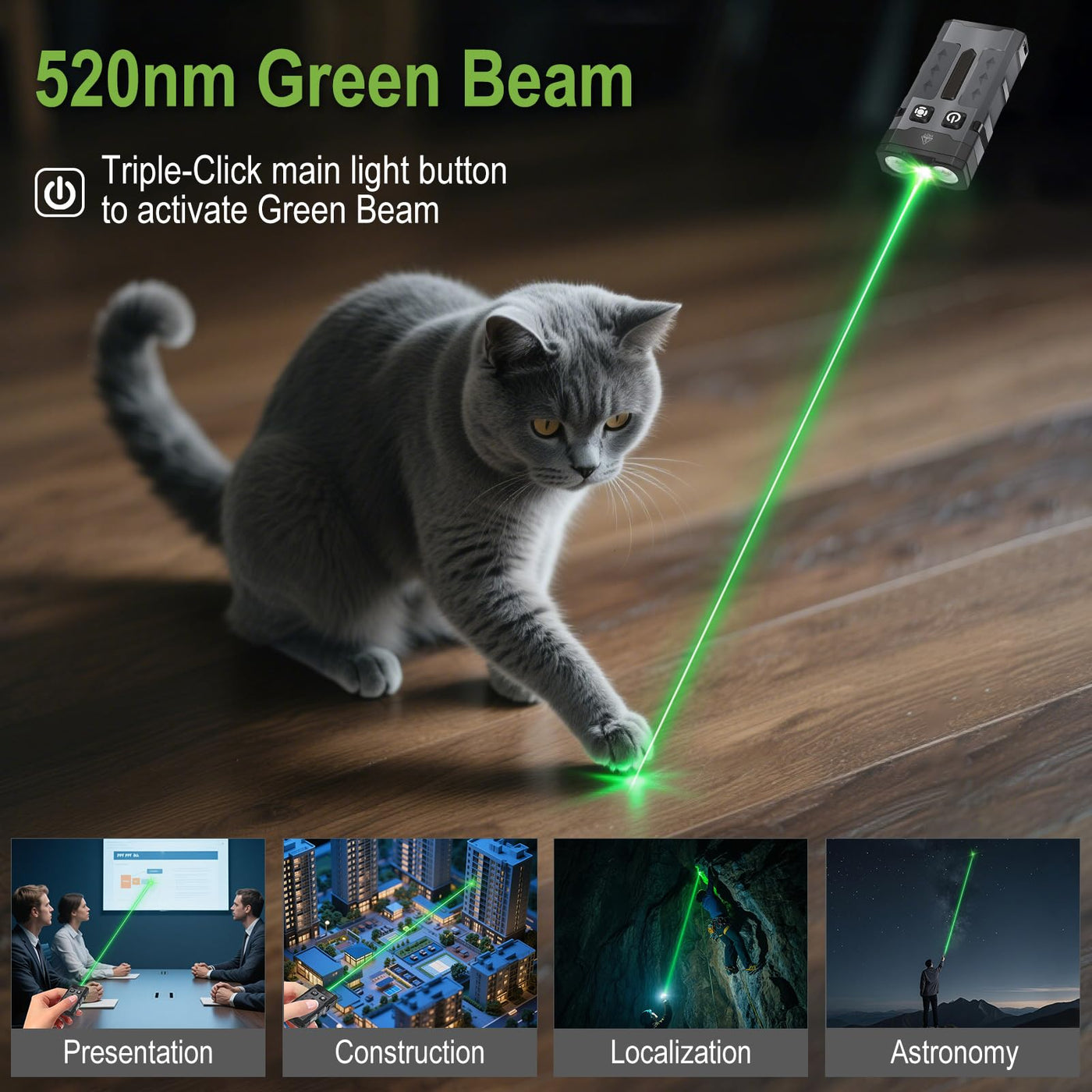 BORUIT EV20L LED Rechargeable Small EDC Flashlight with Green Beam,Pocket Keychain Flashlights with RGB Side Light,IP66 Waterpro