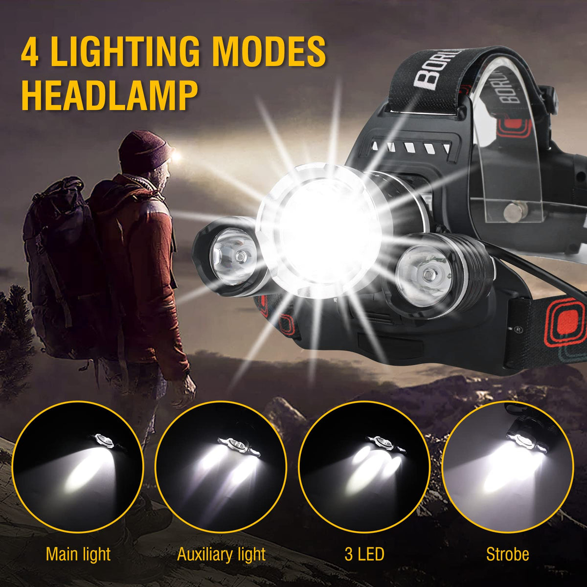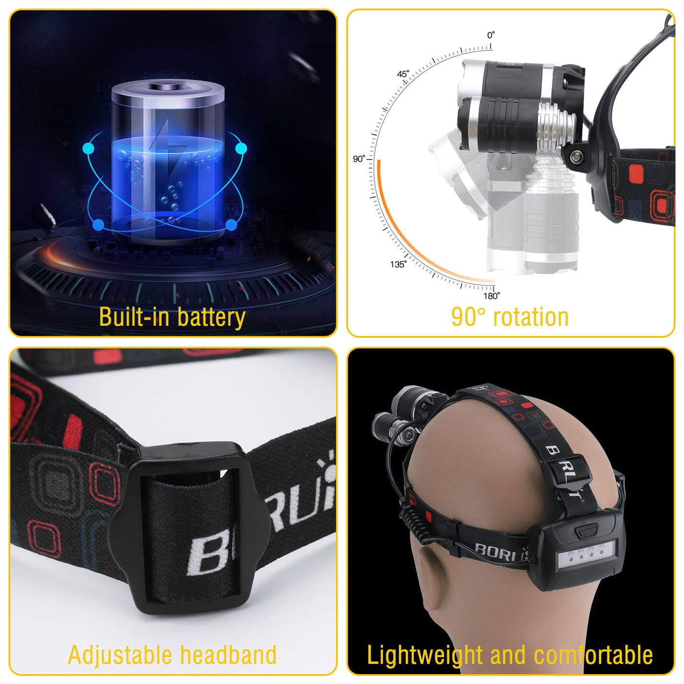 BORUIT super bright rechargeable LED headlamp built-in battery