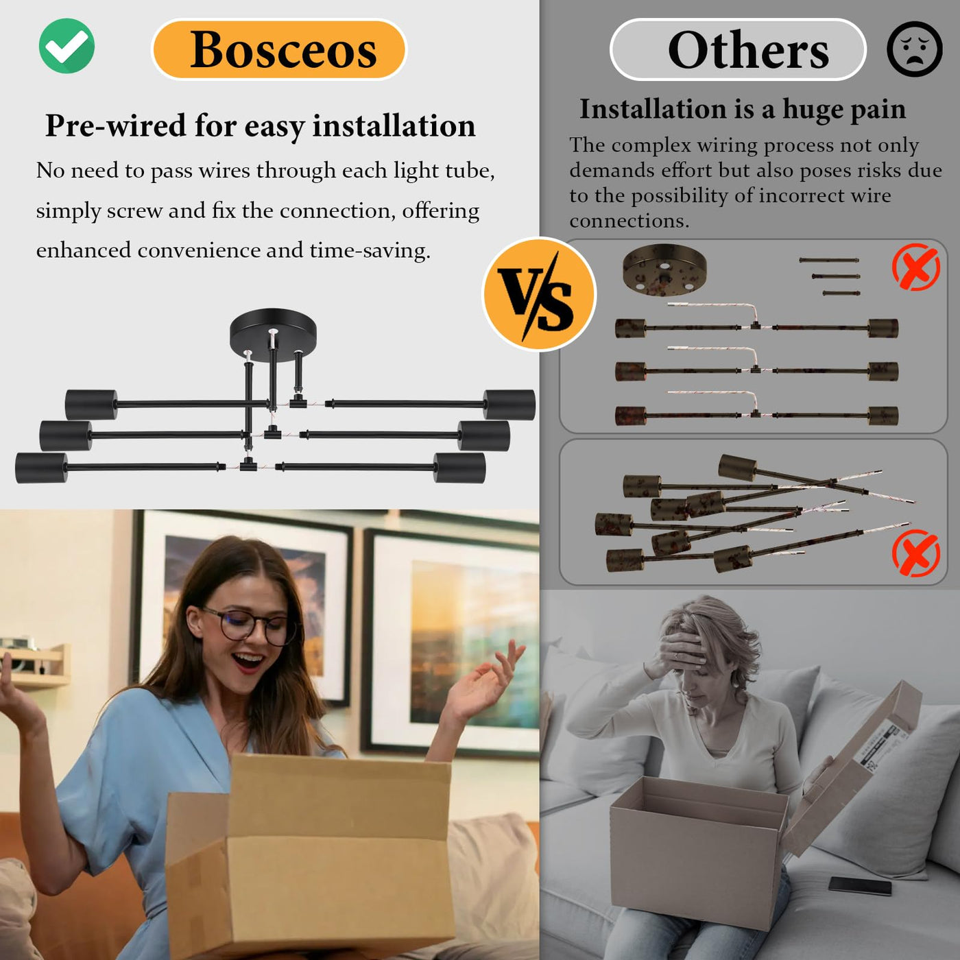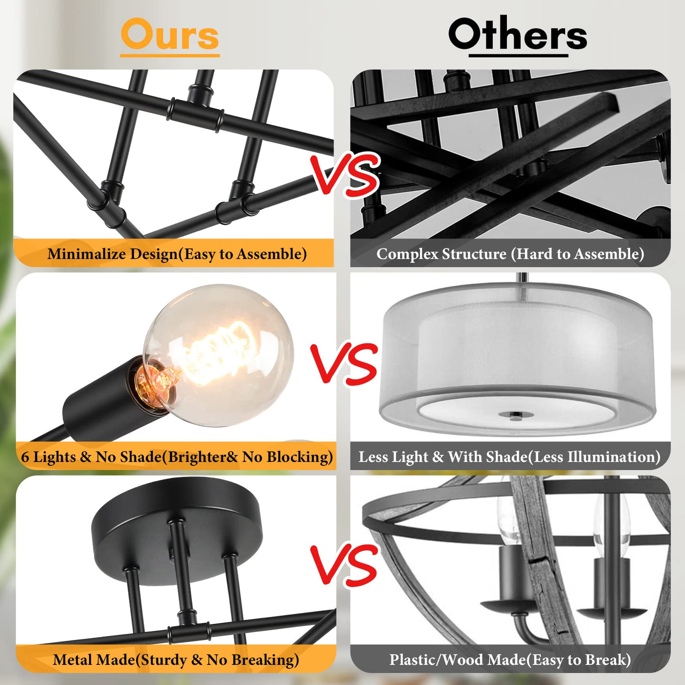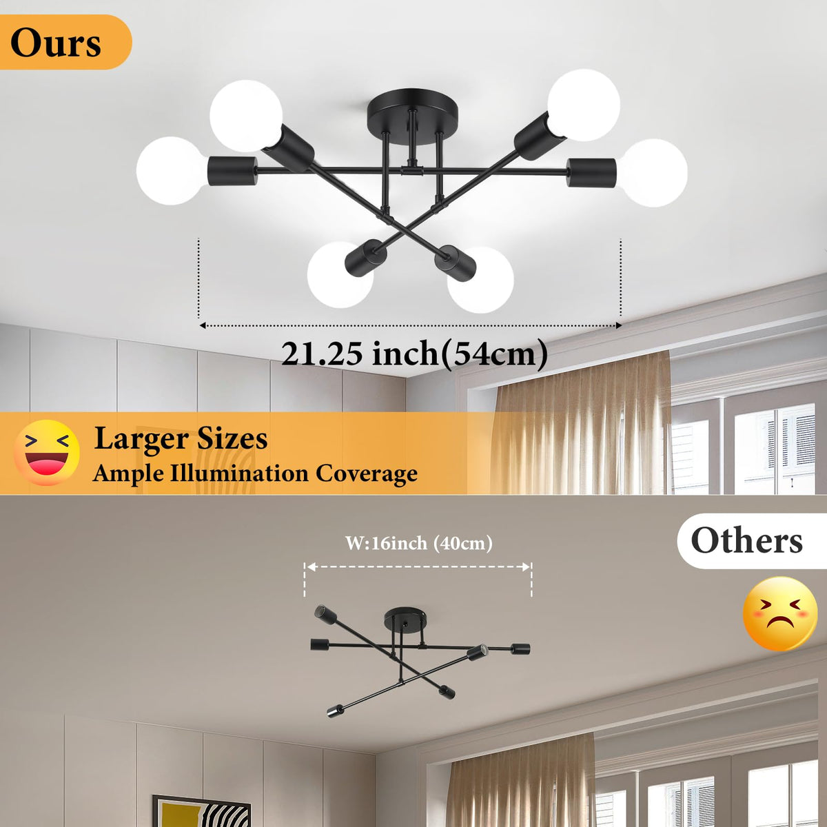 - **Enhanced Illumination**: With six adjustable light sockets and an open design, this ceiling light delivers superior brightness, illuminating every corner of your room. Perfect for reading, watching TV, or entertaining guests, it creates a warm and inviting atmosphere.